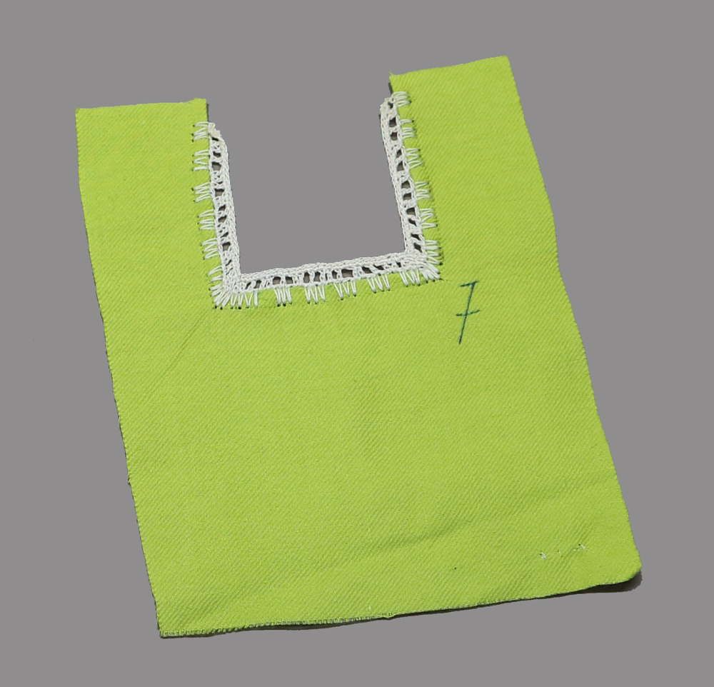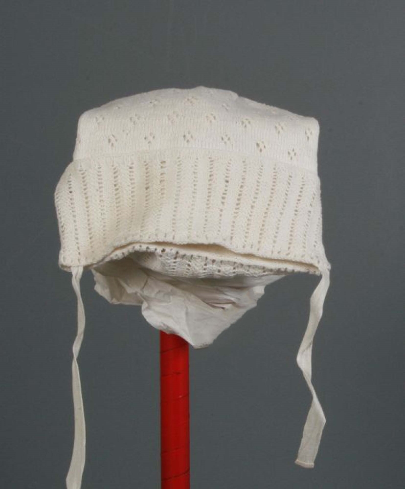 proeflap van kunstzijde voorstellende een babymuts, ...