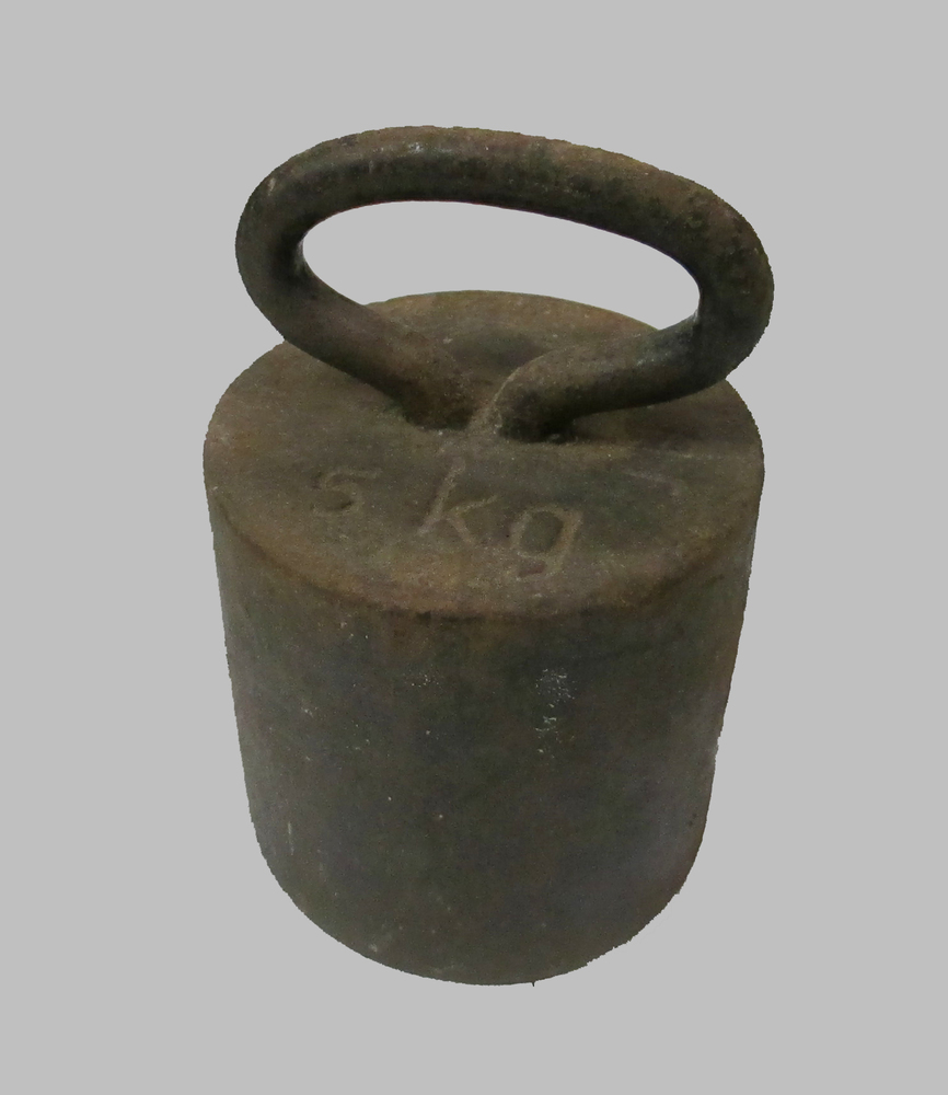 Krukgewicht of basculegewicht van 5 kilogram, uit 1960