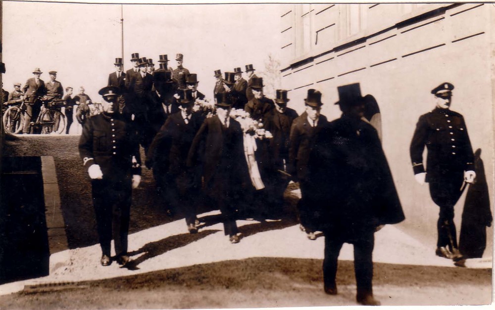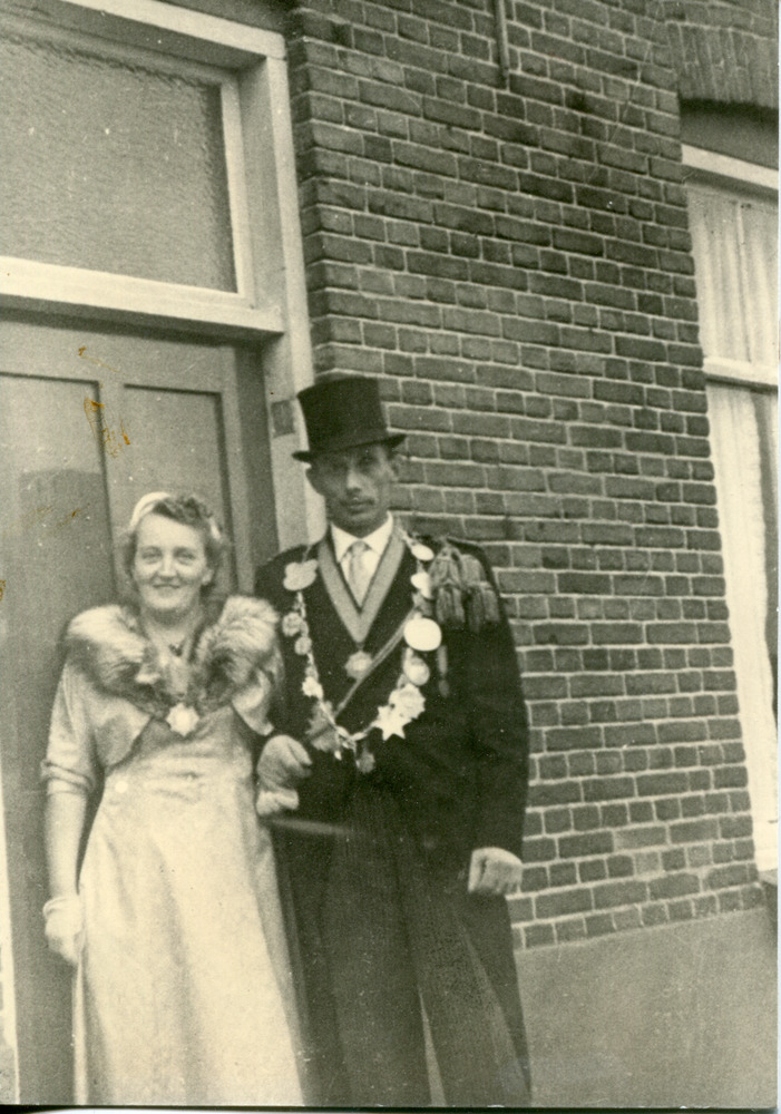 Zwart-wit foto van het koningspaar Vos van de schutt...