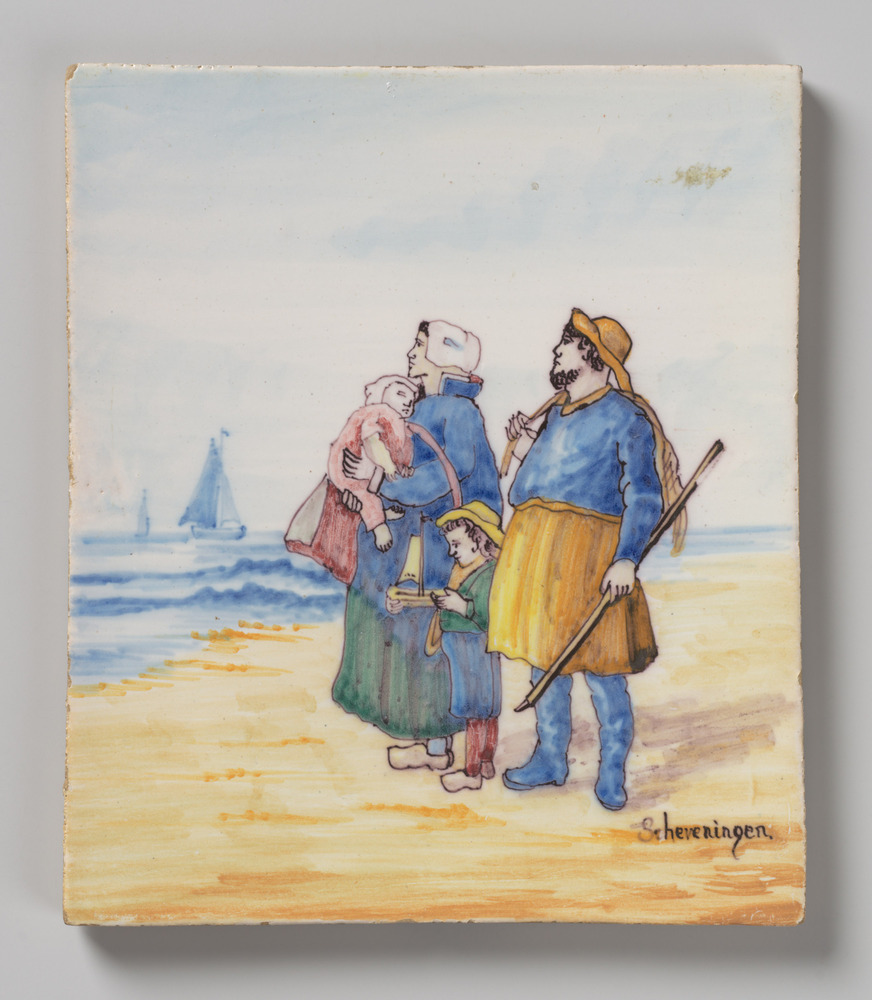 tegel van aardewerk met tinglazuur, voorstellende: m...