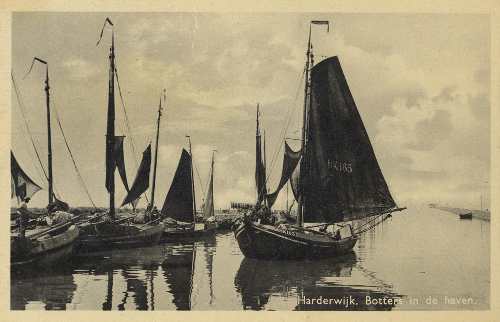 Prentbriefkaart, getiteld 'Harderwijk. Botters in de...