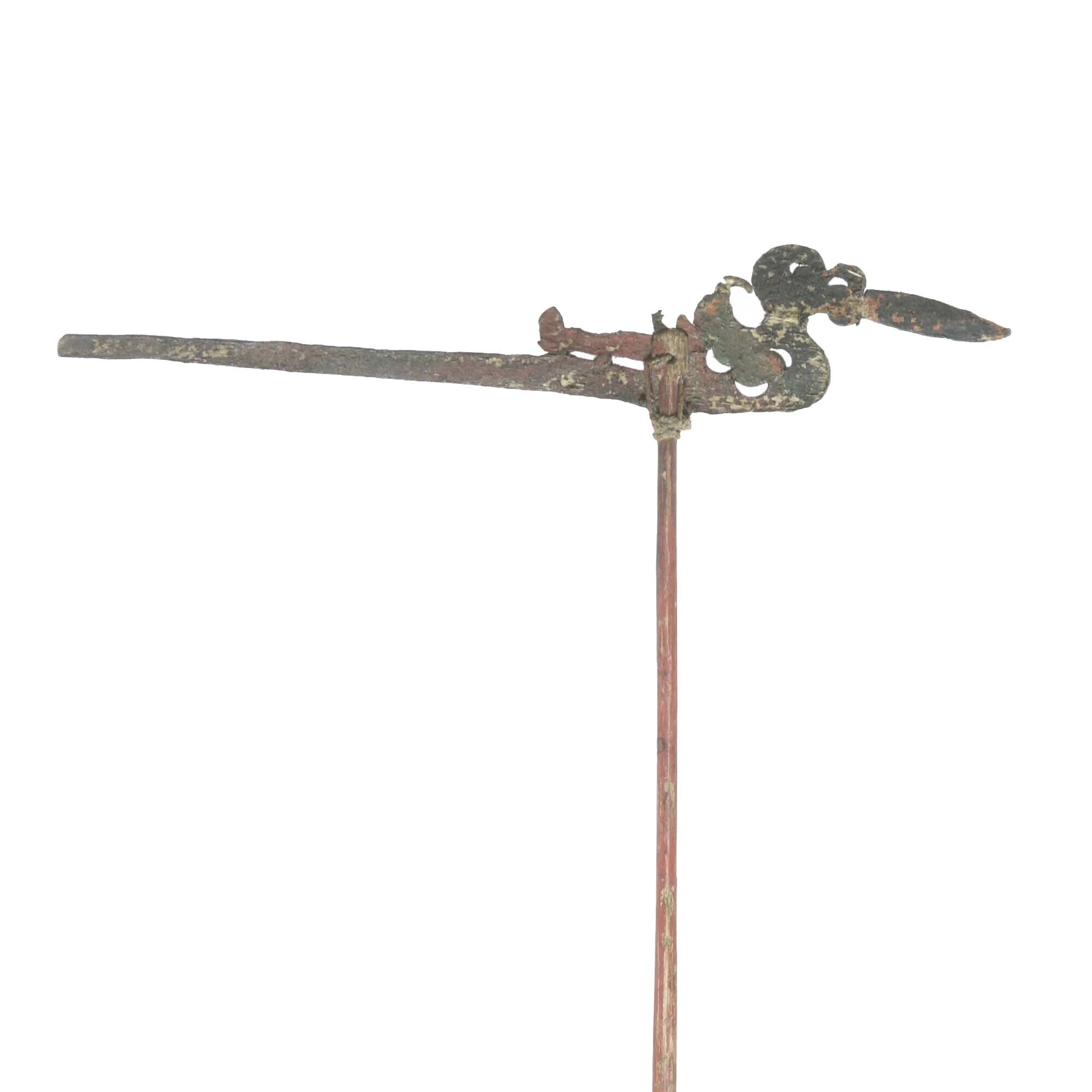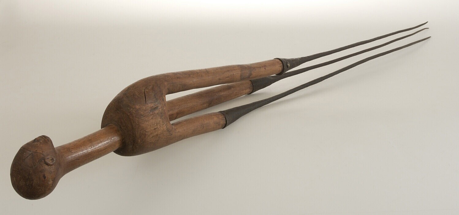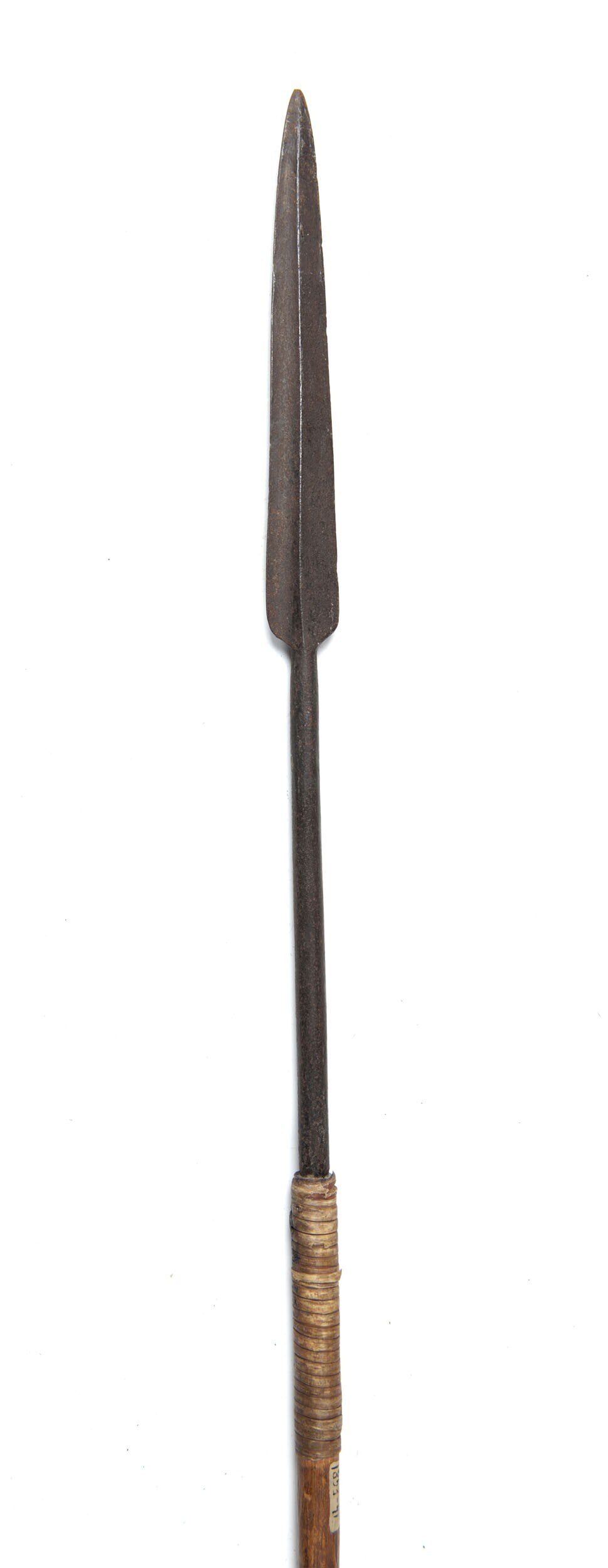 Houten lans met ijzeren punt omwikkeld met rotan