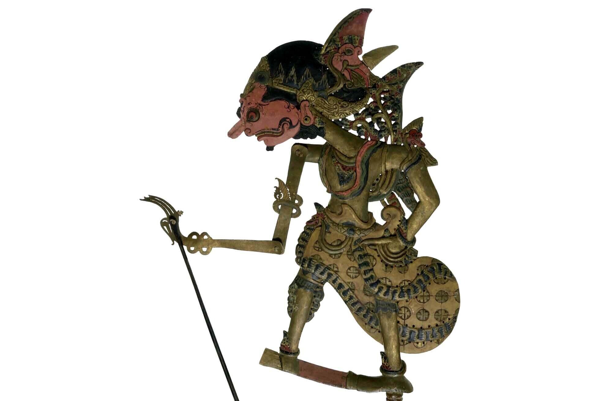 Leren wayangfiguur strijdknots (gada)