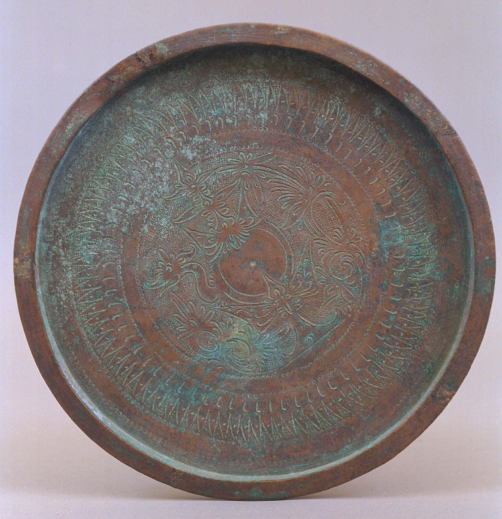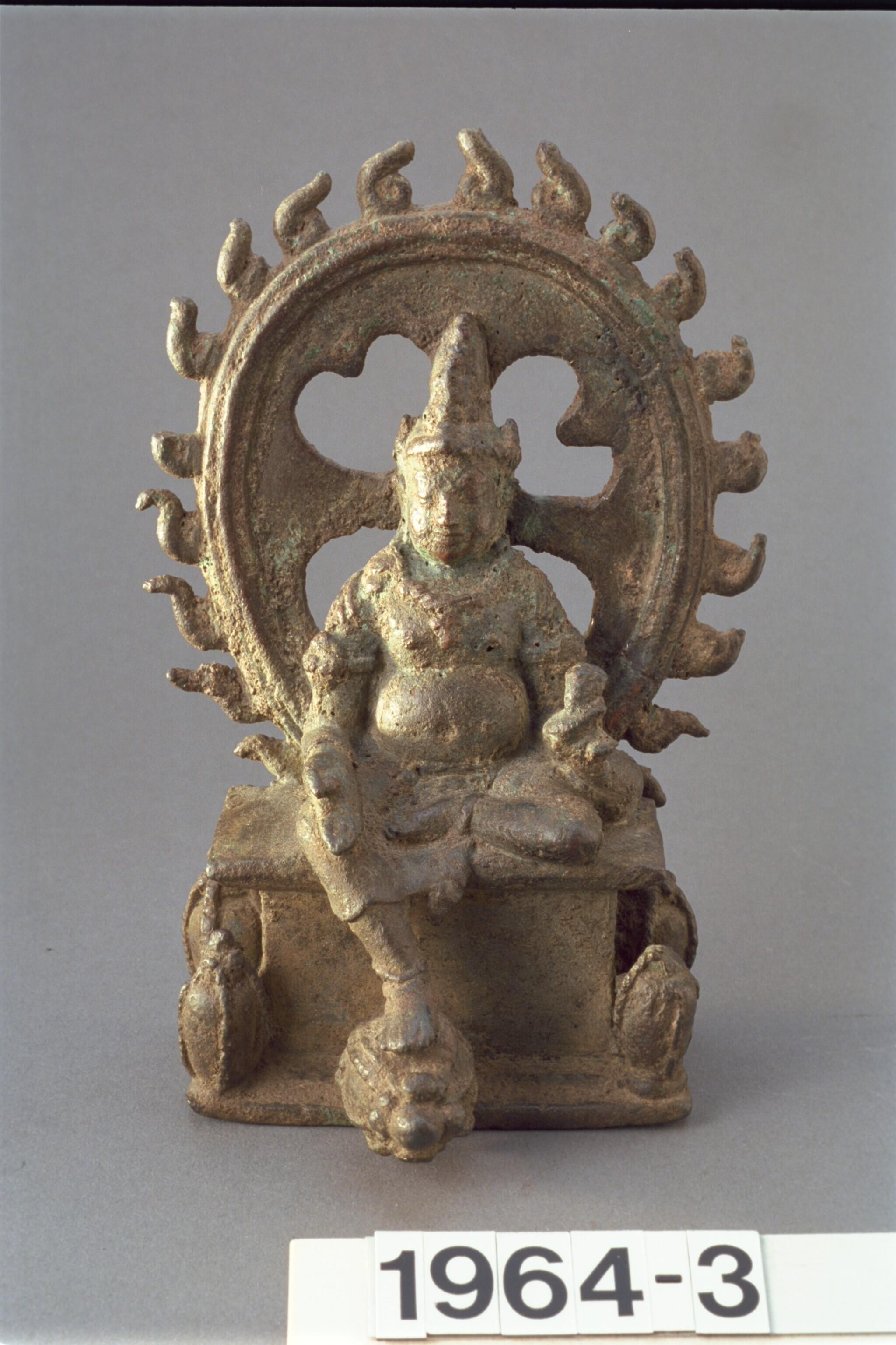 Indo-Javaanse bronzen bidschel met nandi-versiering.