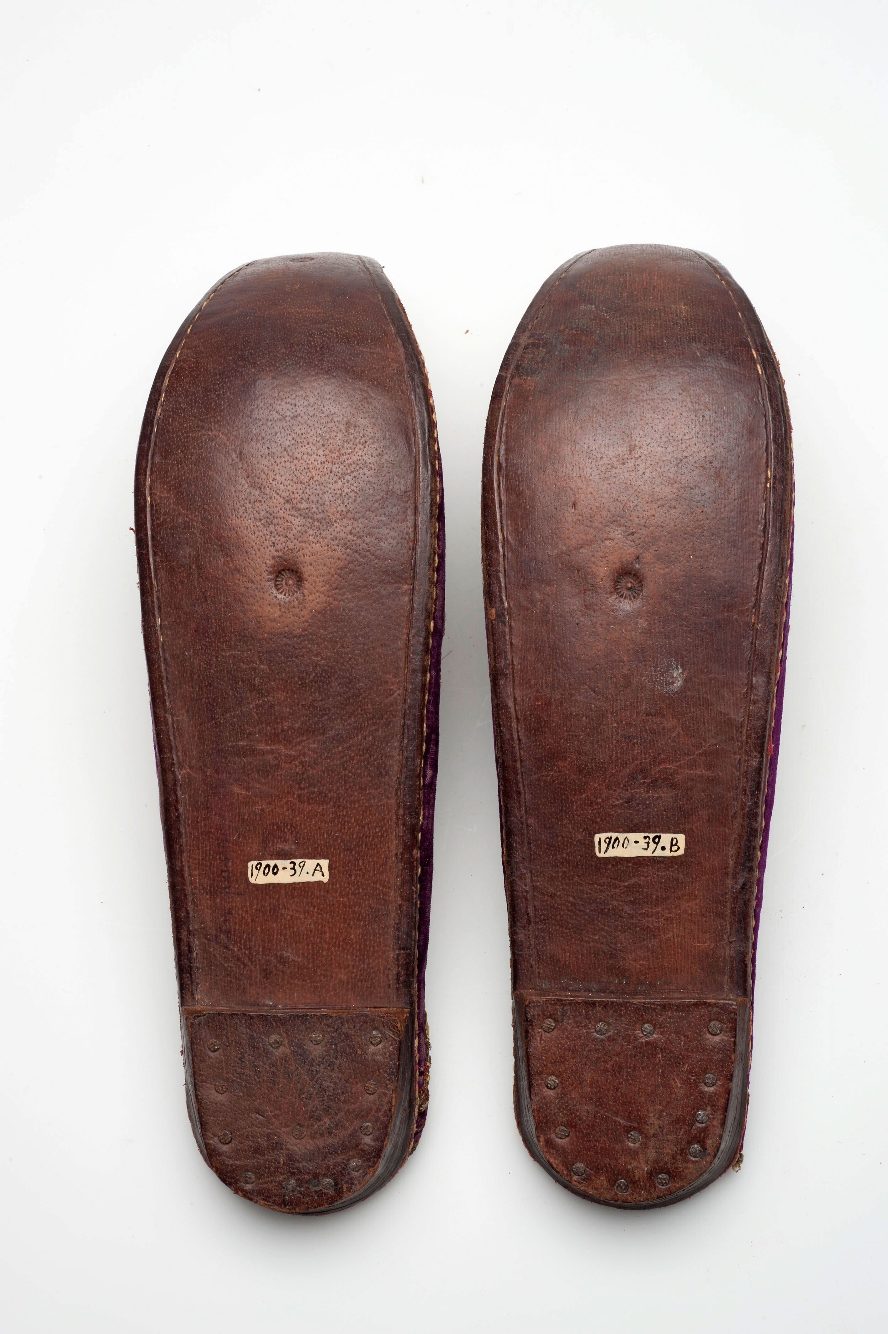 Slipper of velvet and leather embroidered with flora...