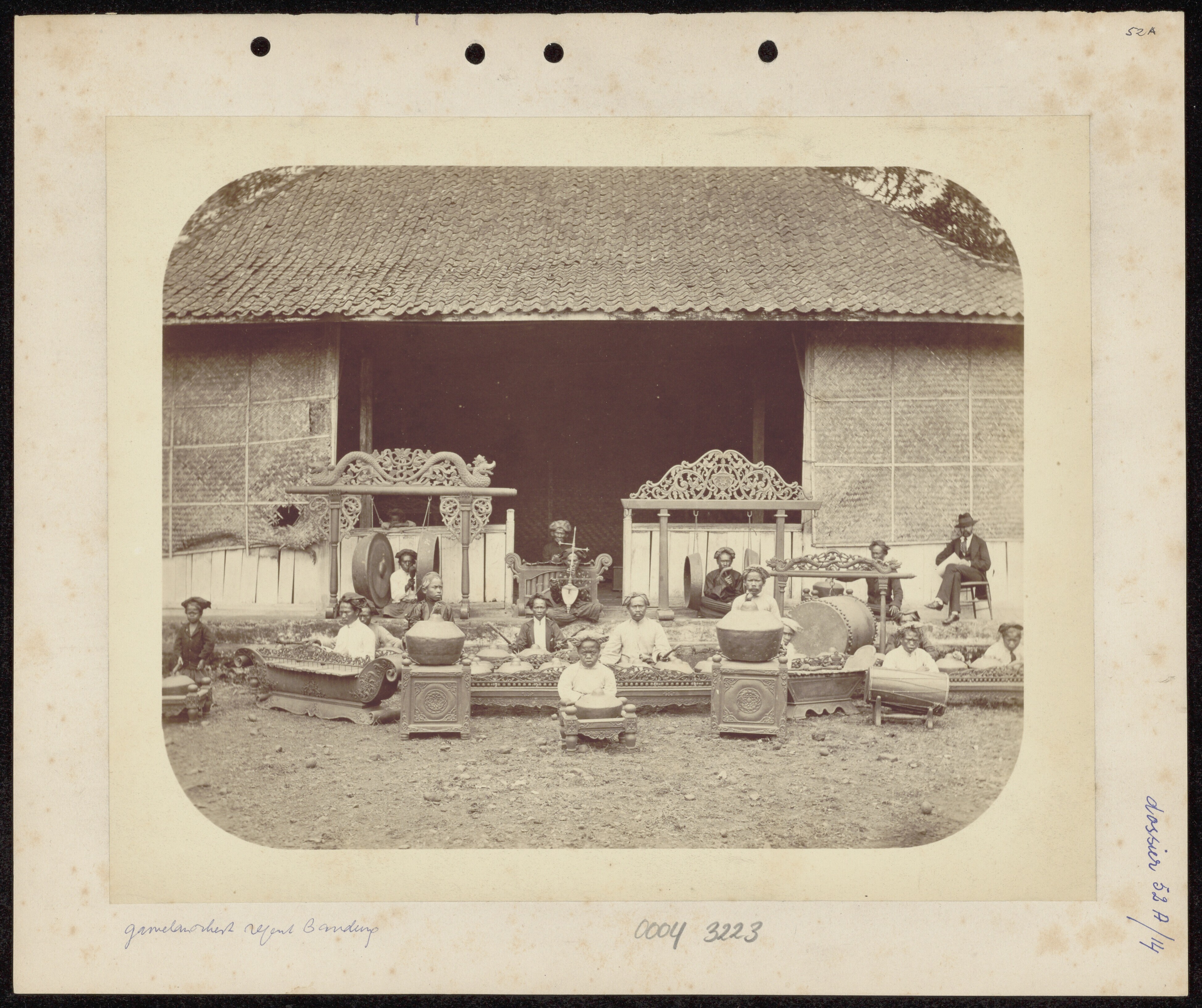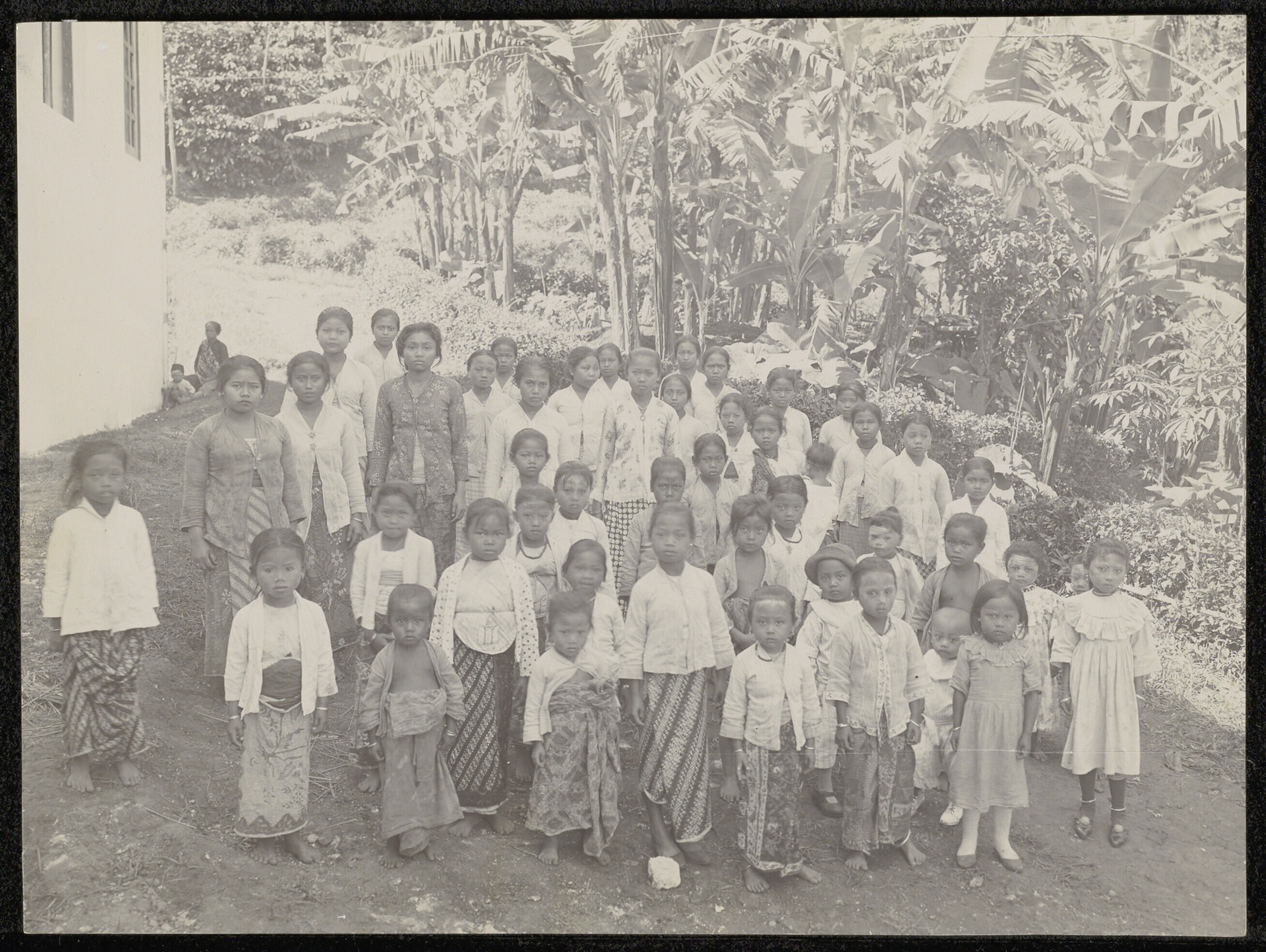 Javaanse arbeiders en kinderen poseren met een Europ...