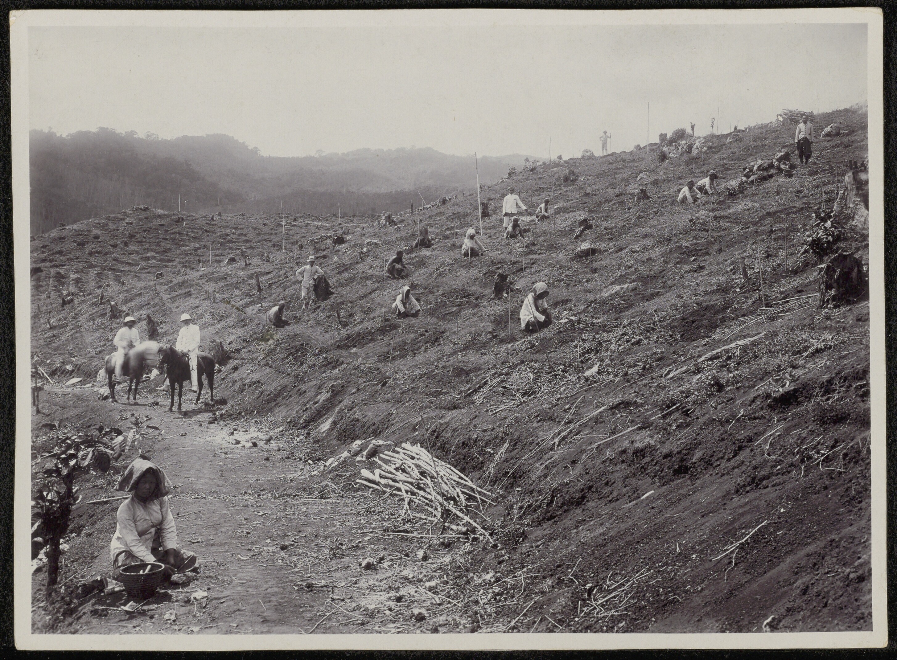 Het aanplanten van rubberbomen en koffiestruiken (?)...