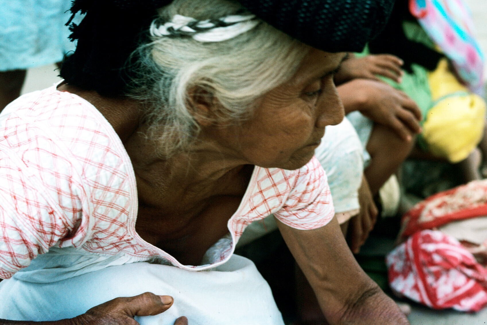 vrouwen op markt; NB typische haardracht met "petob"