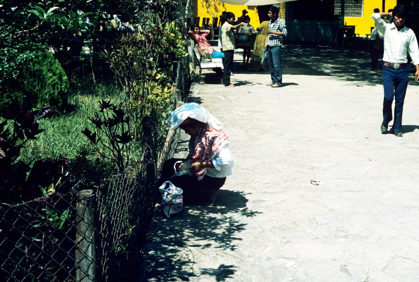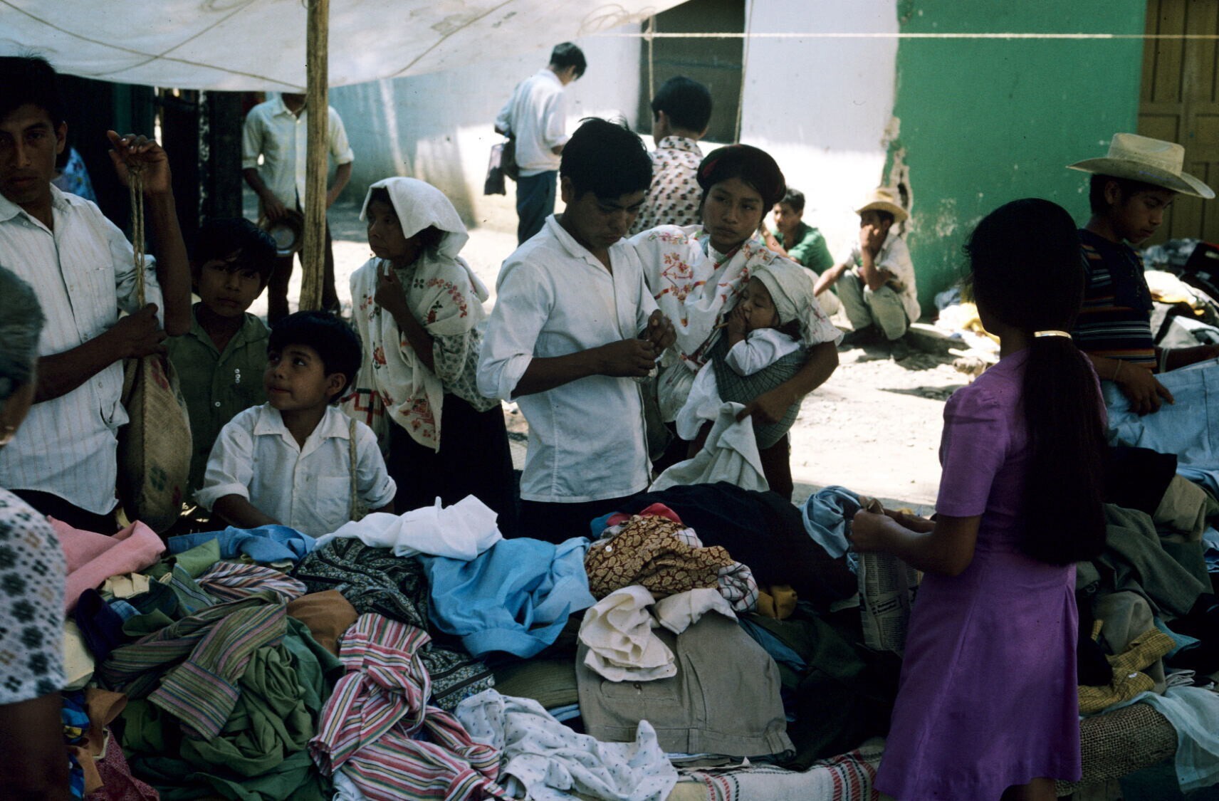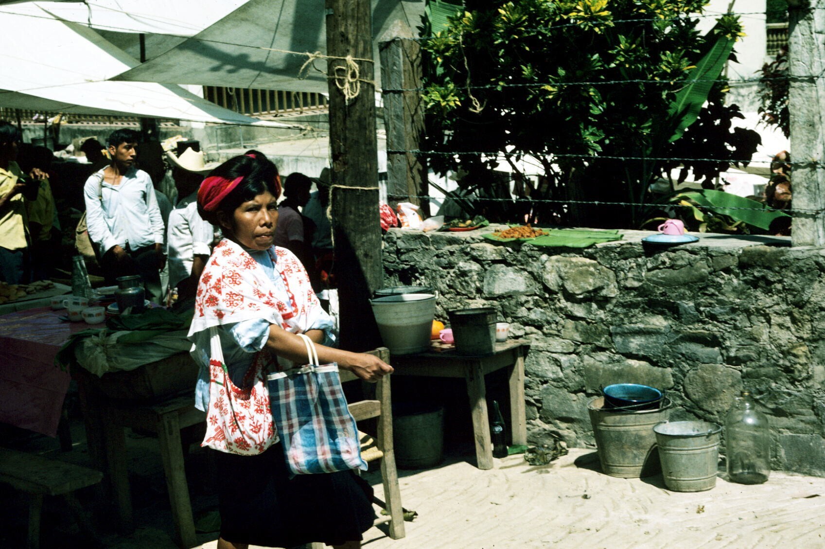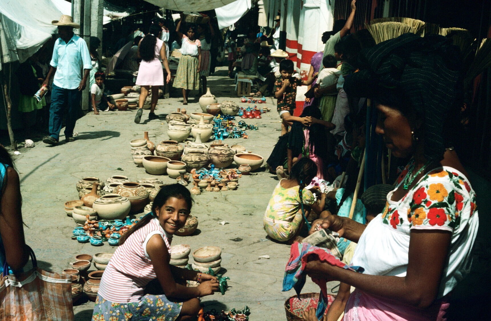 koopvrouwen met aardewerk, o.a. uit Chililico, op markt