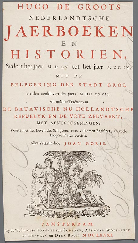 Titelpagina "Nederlandtsche Jaerboeken en historien"