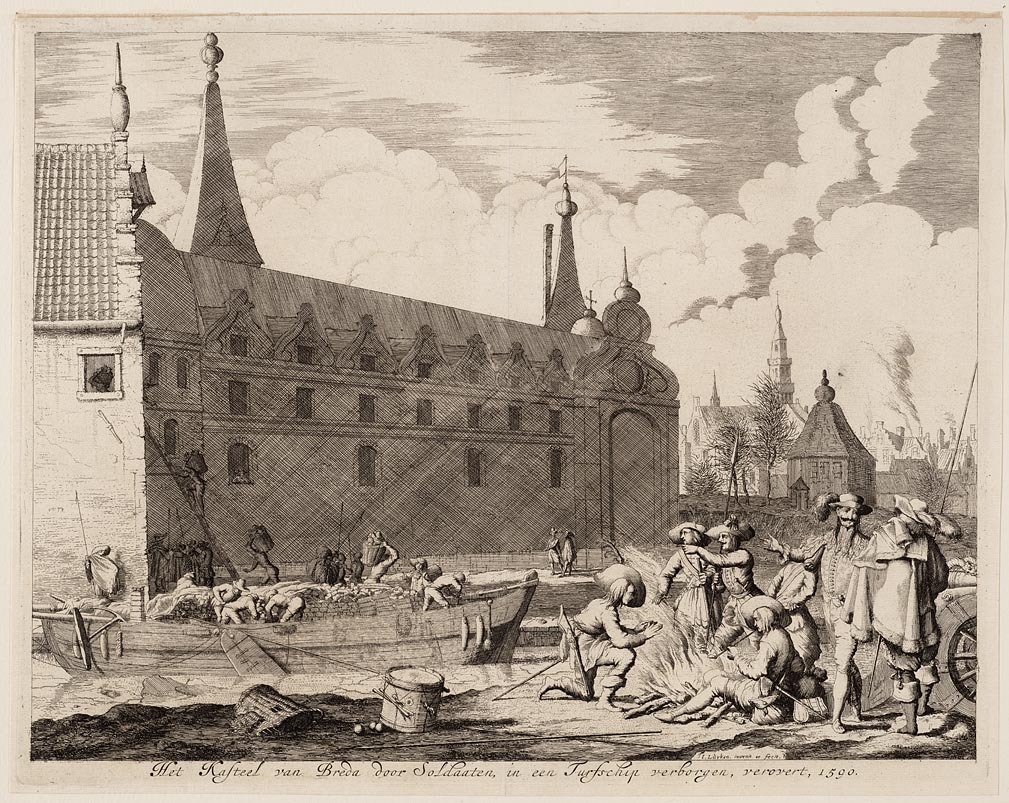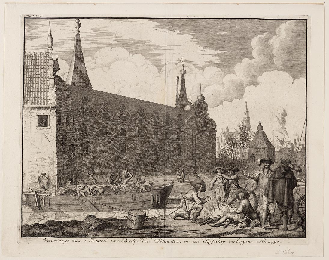 Het kasteel van Breda door soldaaten, in een turfsch...