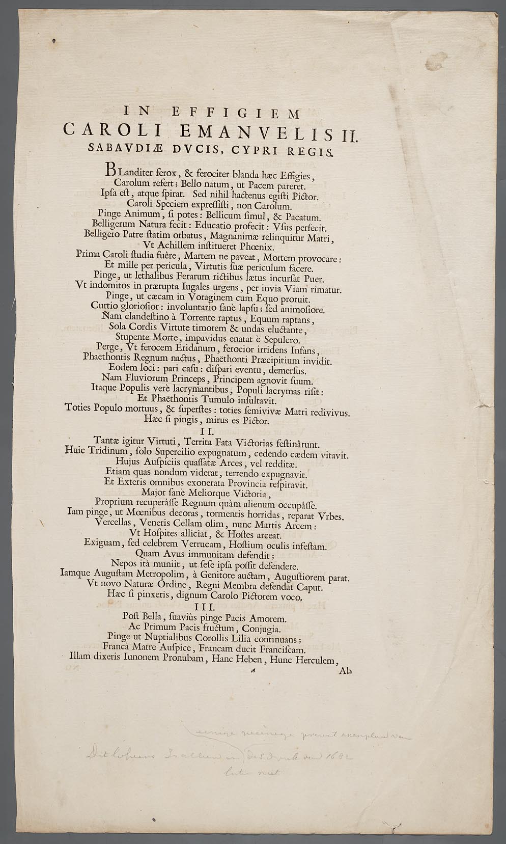 In Effigiem Caroli Emanuelis II [=Op de beeltenis va...