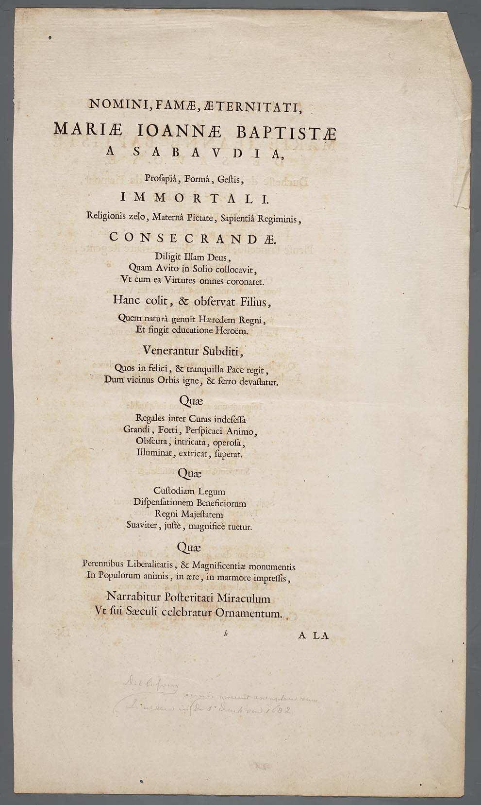 Nomini, Famae, Aeternitati Mariae Ioannae Baptistae ...