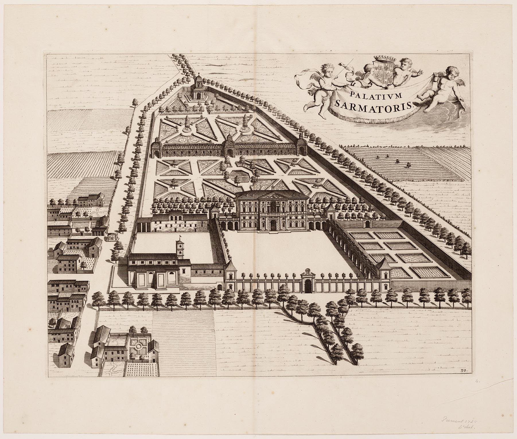 Titelprent "Tooneel der vermaarste koop-steden en ha...
