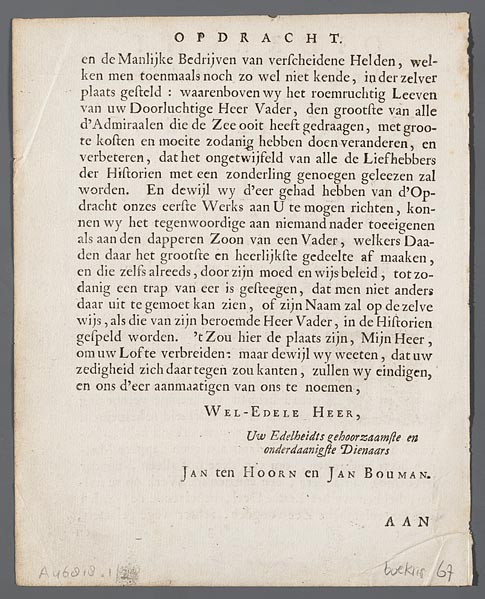 Opdracht aan Engel de Ruiter, baron, ridder, vice-ad...