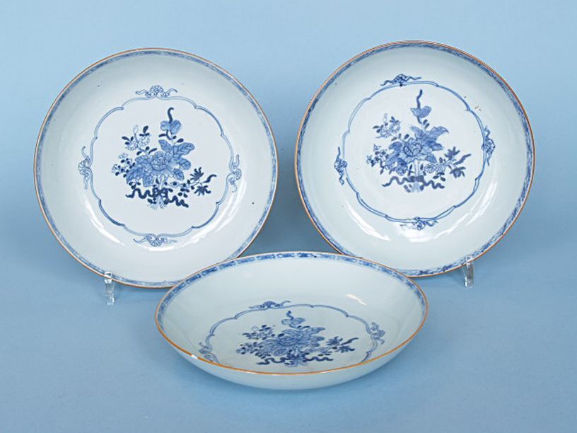 3 schalen met decor van bloemboeket binnen geschulpt...