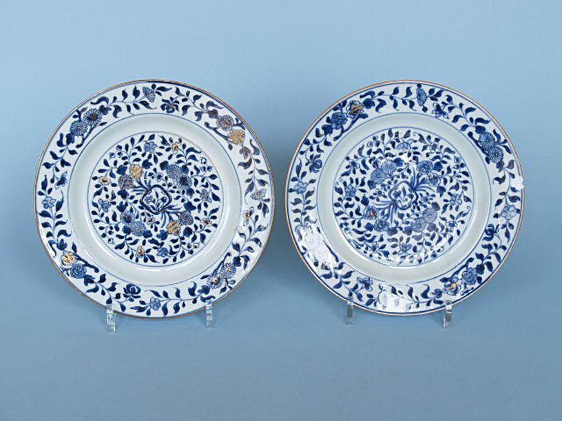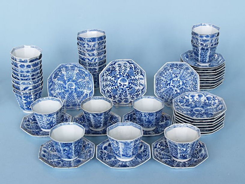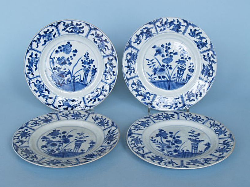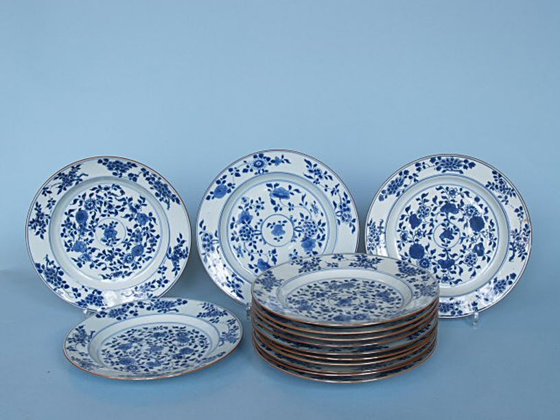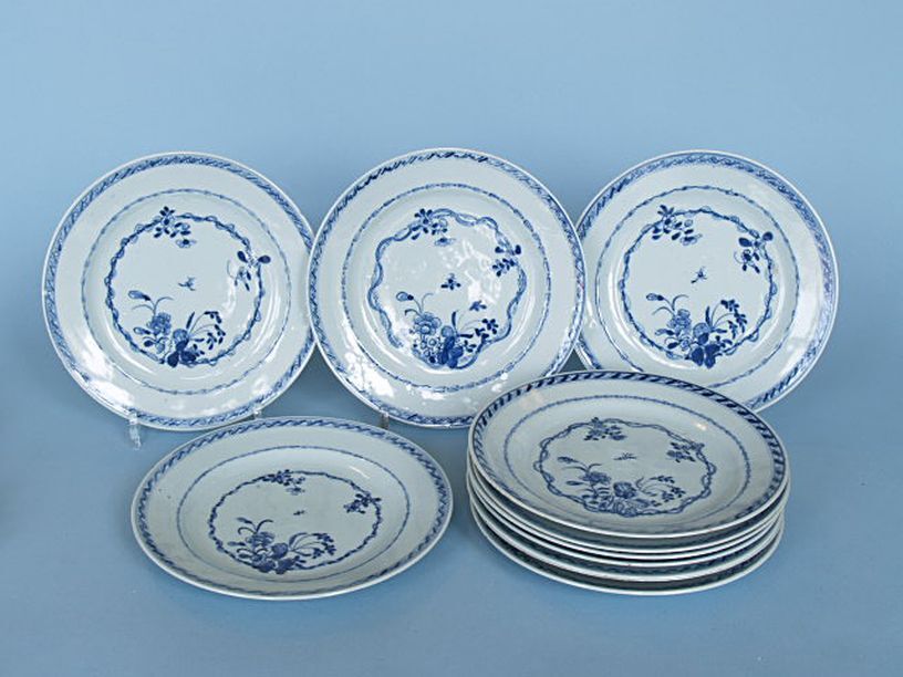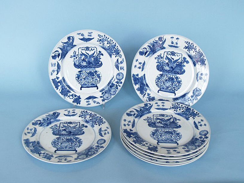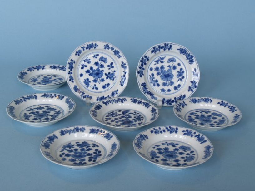 8 borden, onderglazuur blauw