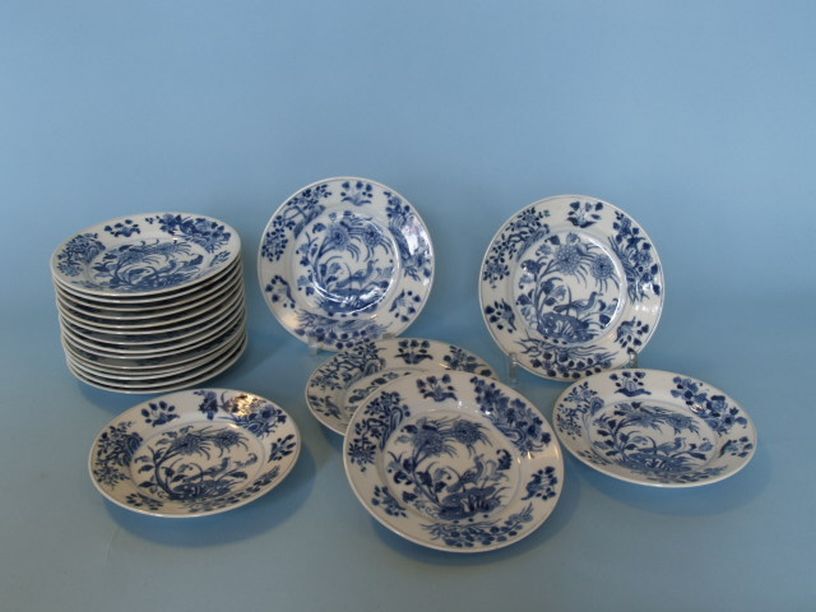20 kleine borden met decor van vogel op rots omgeven...