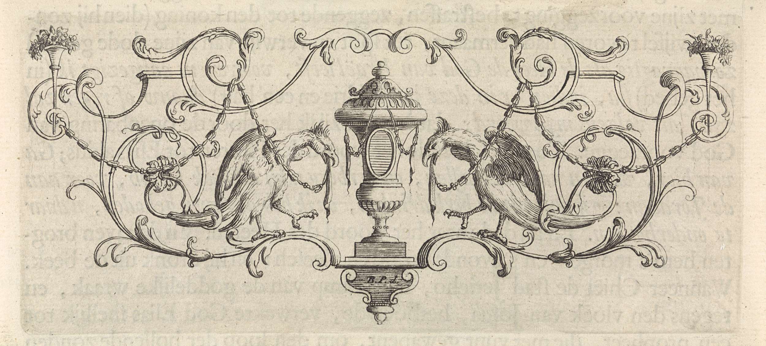 Vaas geflankeerd door vogels met guirlandes in hun bek