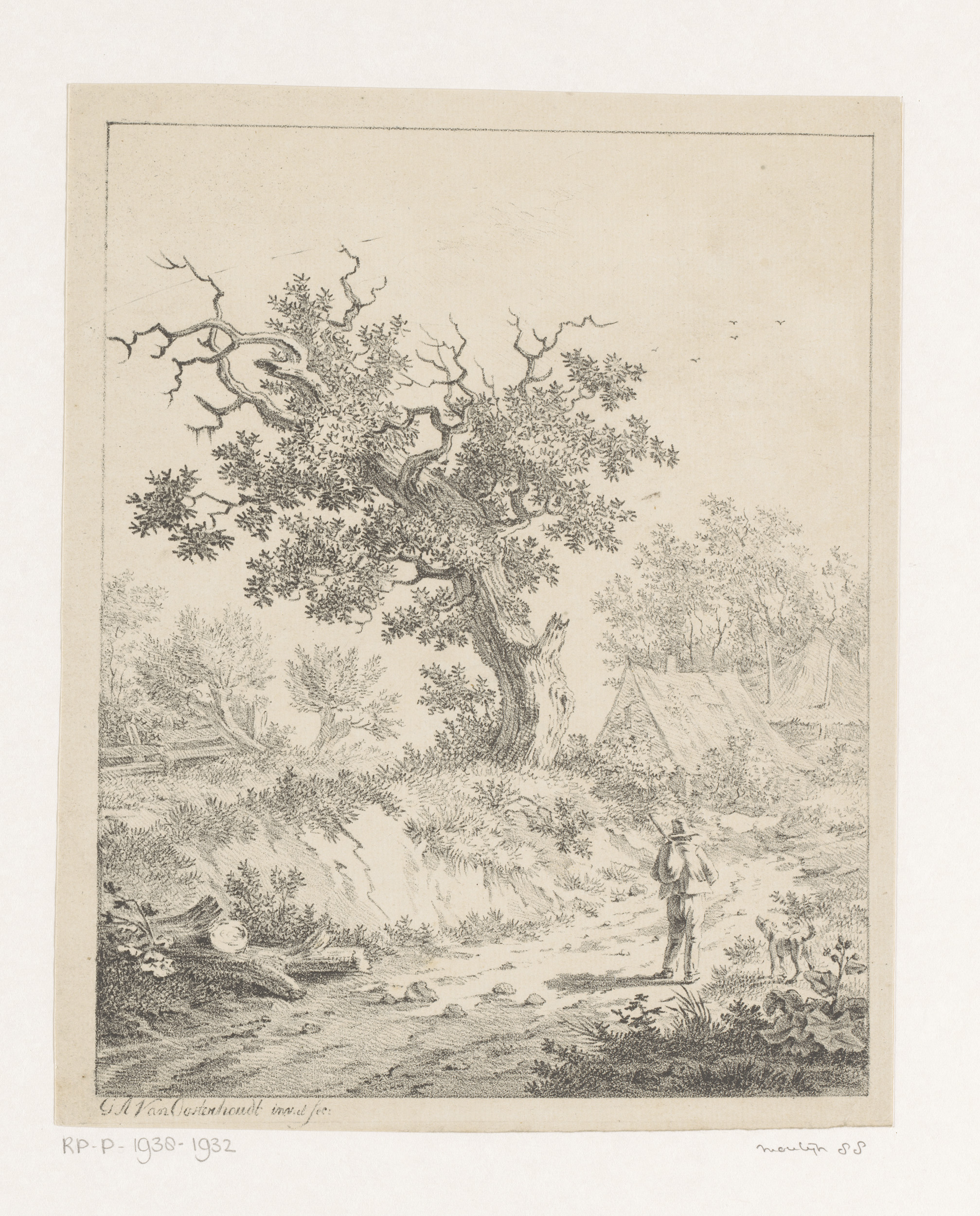 Landschap met man en hond