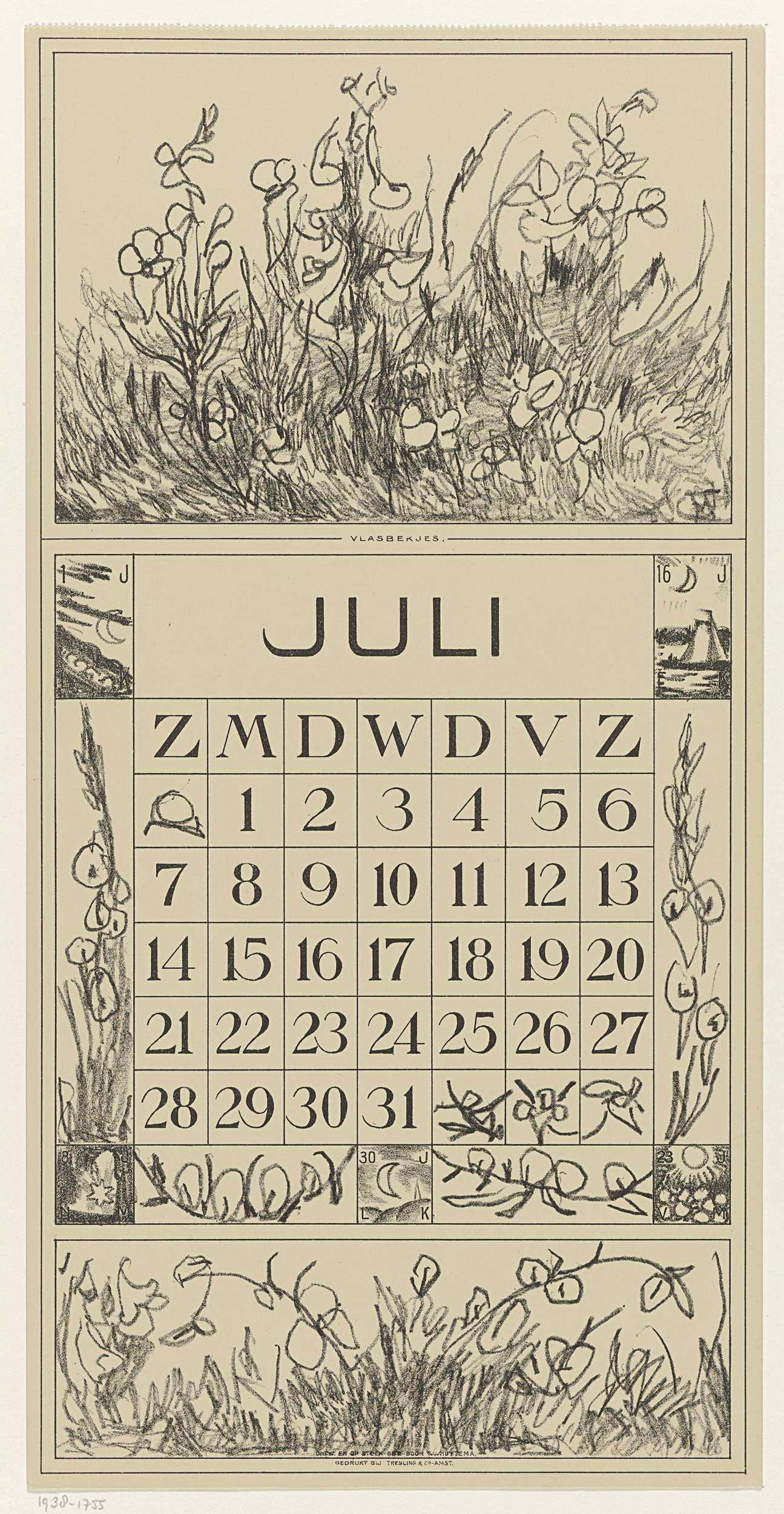 Kalenderblad juli met vlasbekjes
