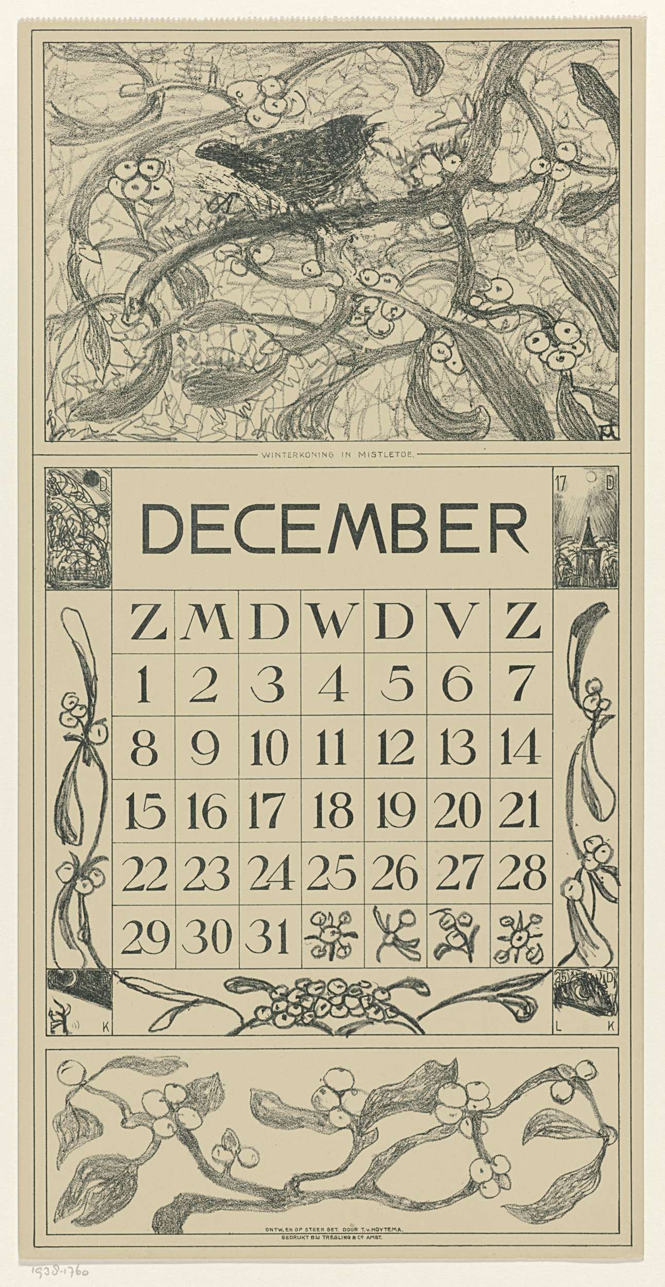 Kalenderblad december met winterkoninkje