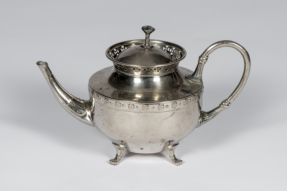 Theeservies van vernikkeld koper, vervaardigd door M...