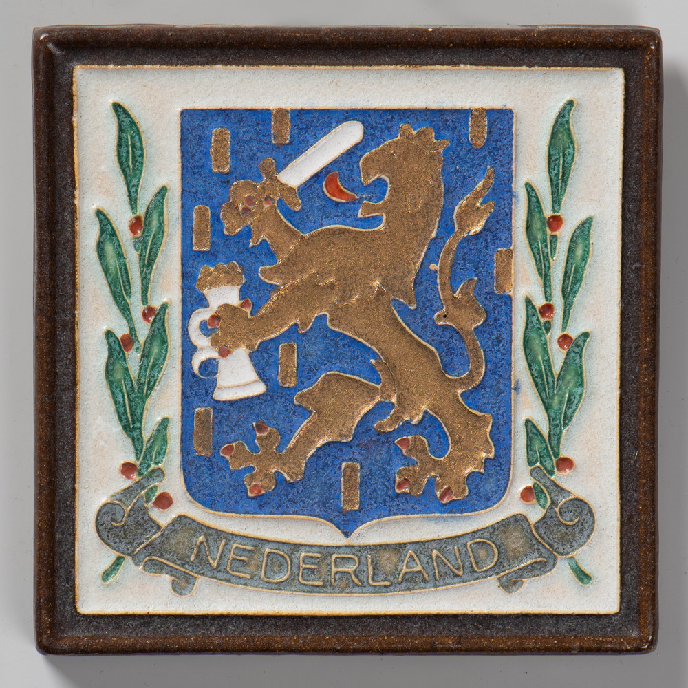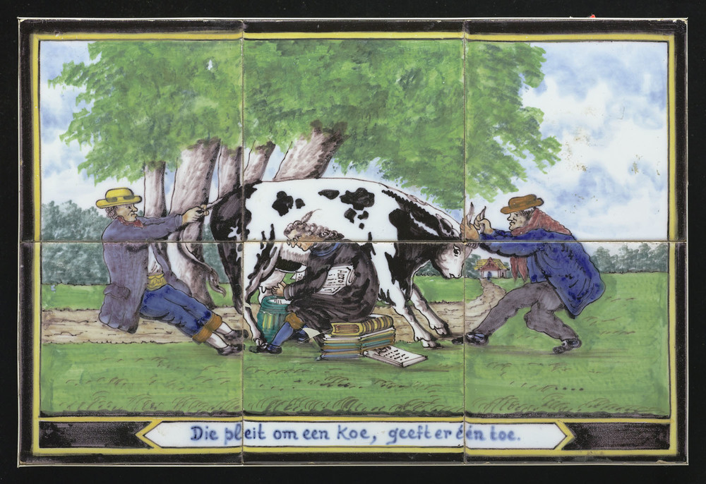 Tegeltableau van keramiek met tinglazuur, voorstelle...