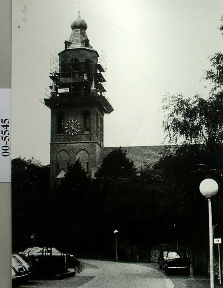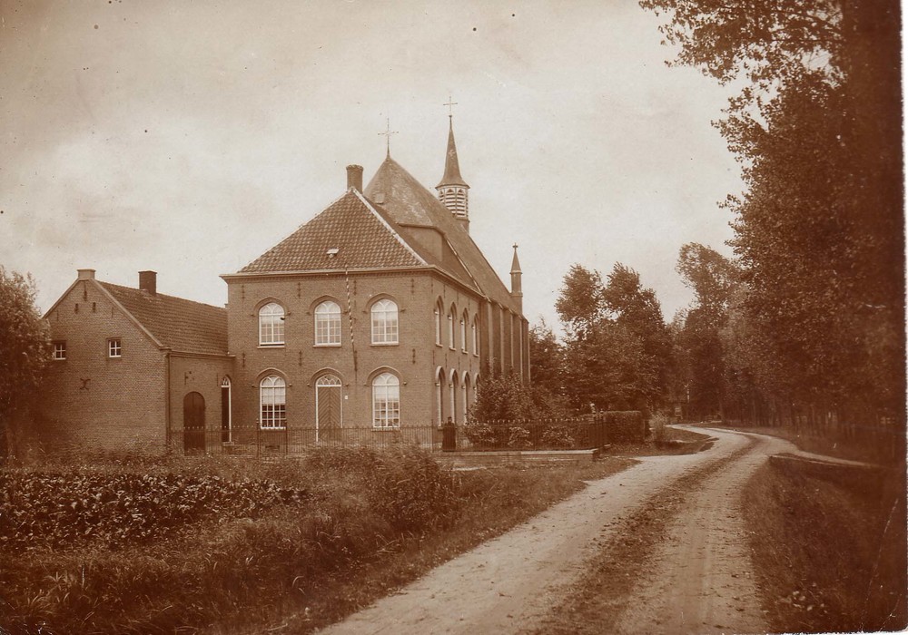 R.K. St, Barbarakerk te Hurwenen op voorgrond de pas...