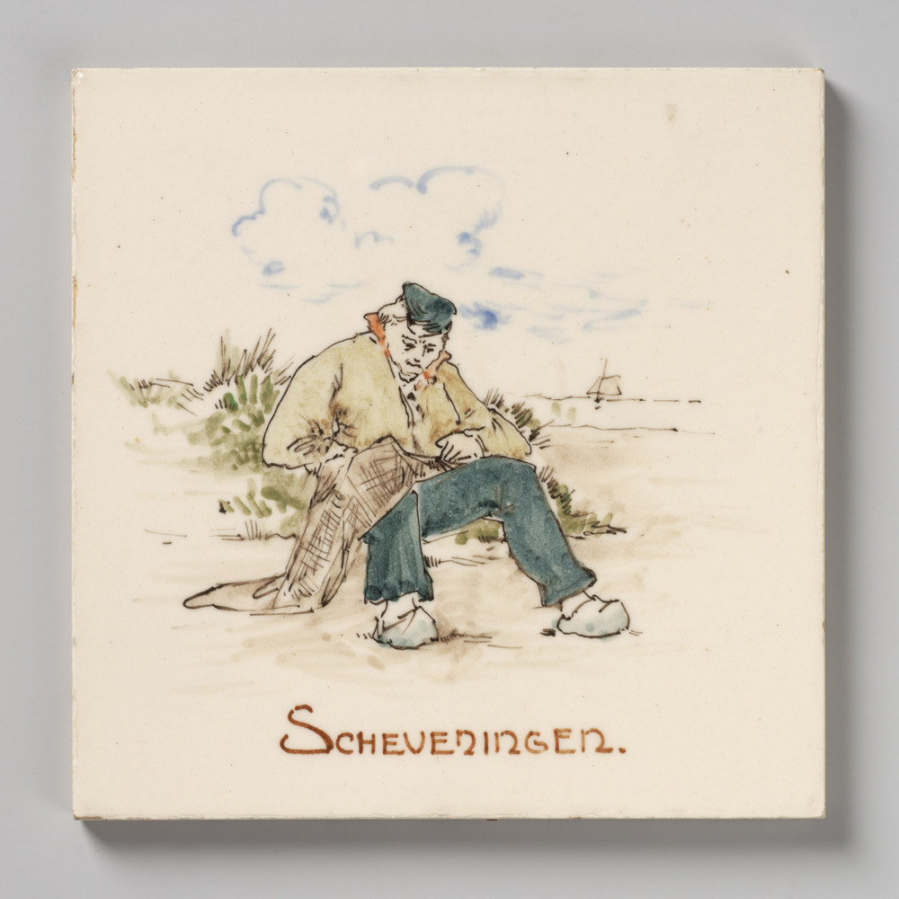 tegel van aardewerk in onderglazuur, voorstellende: ...