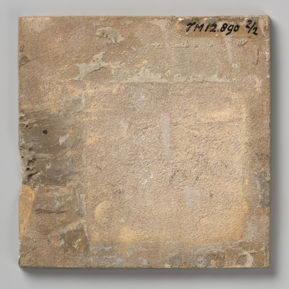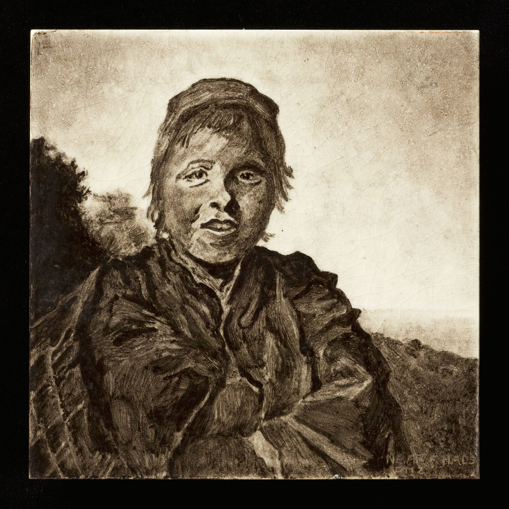 randtegel van keramiek met tinglazuur, voorstellende...