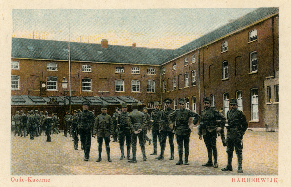 Prentbriefkaart, getiteld 'Oude-Kazerne Harderwijk'