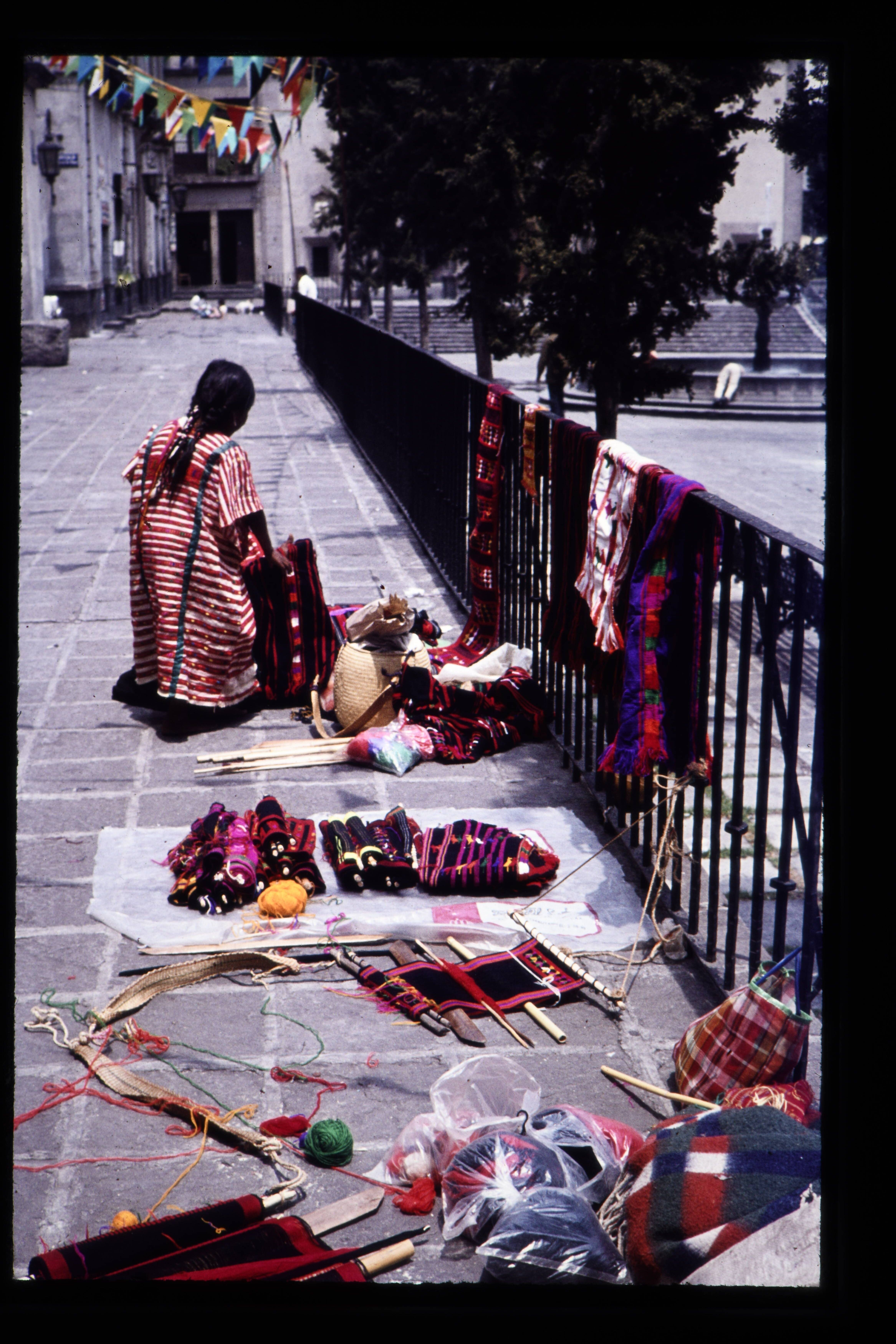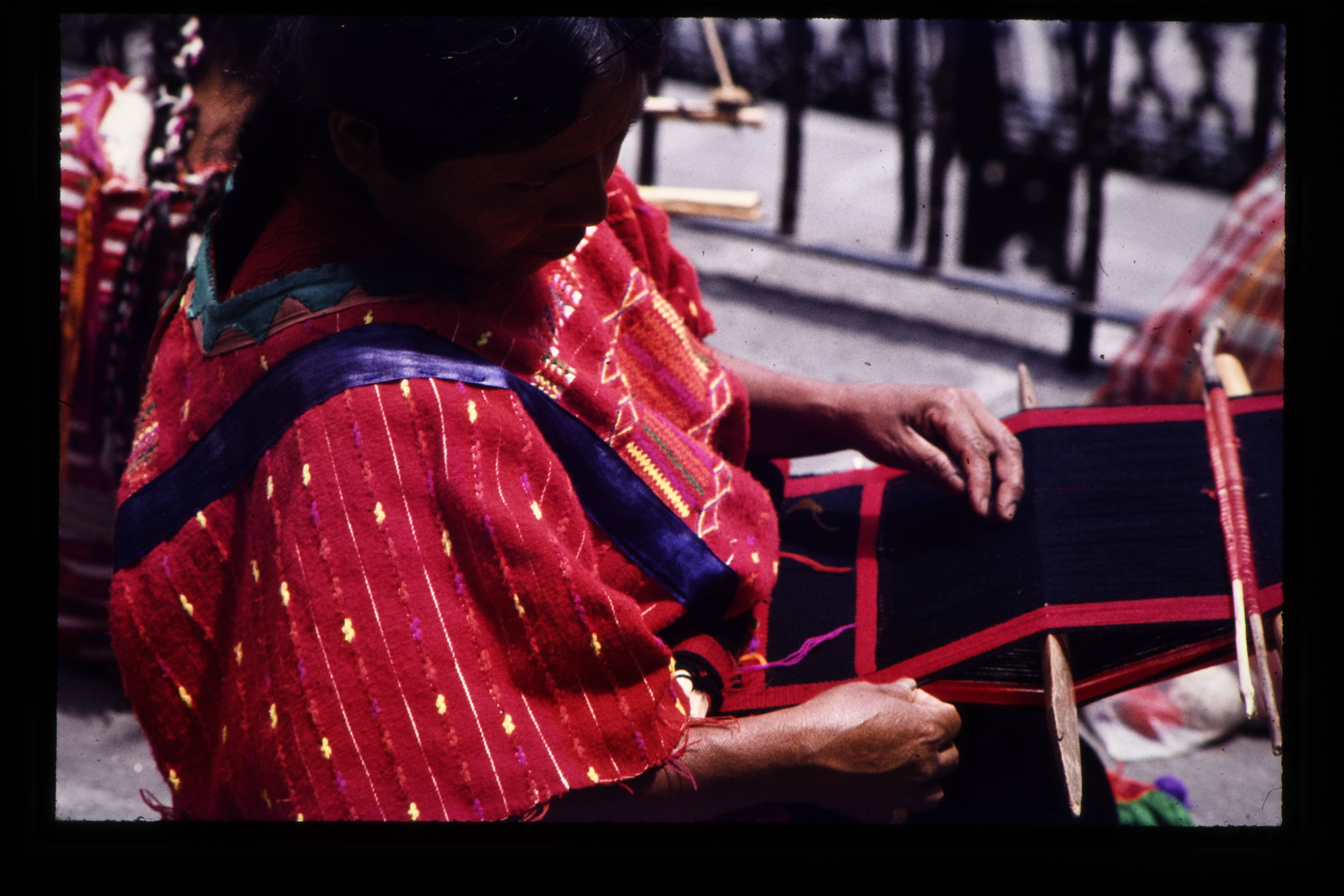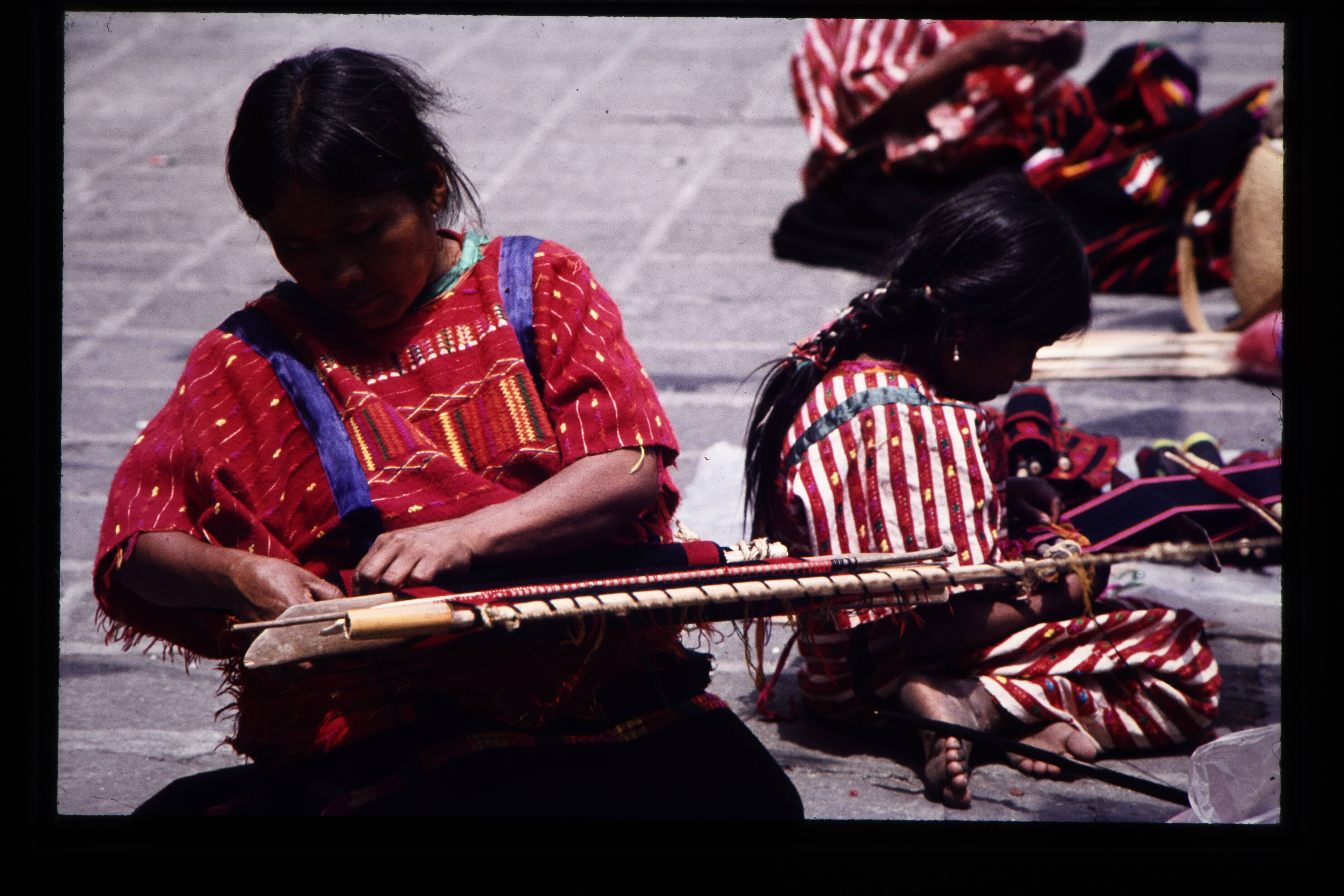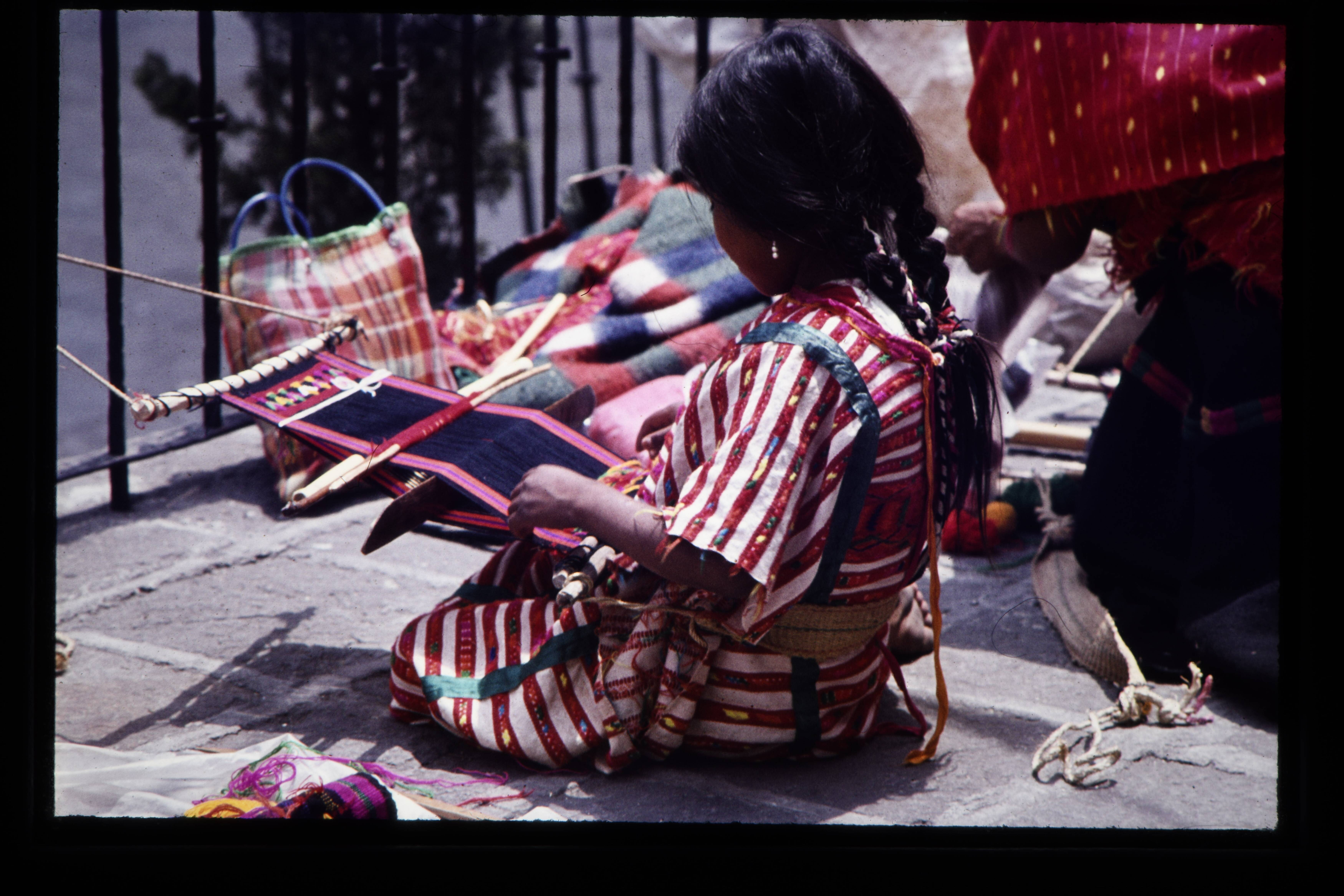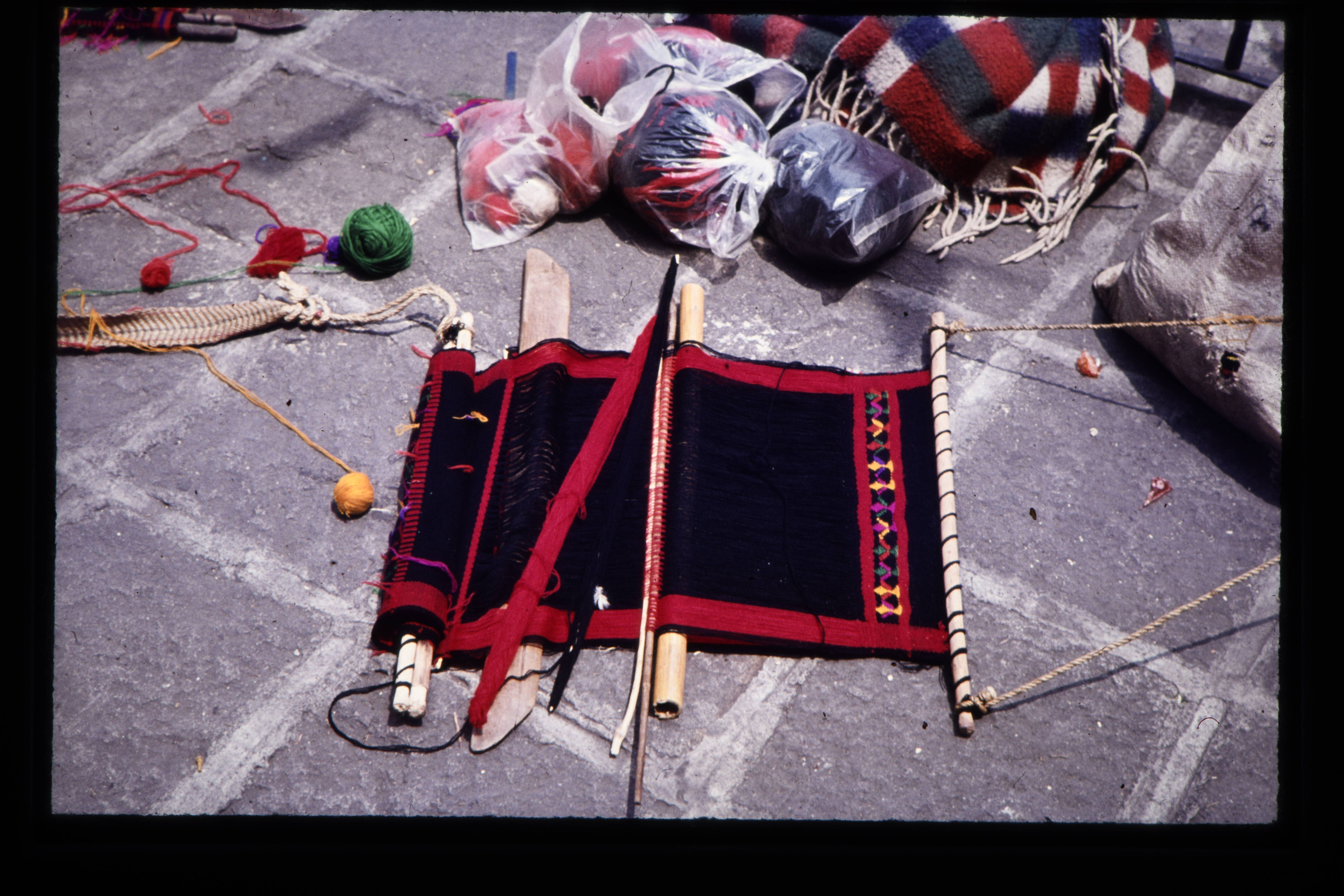 'Het weven van kleden. De vrouwen gebruiken een heup...