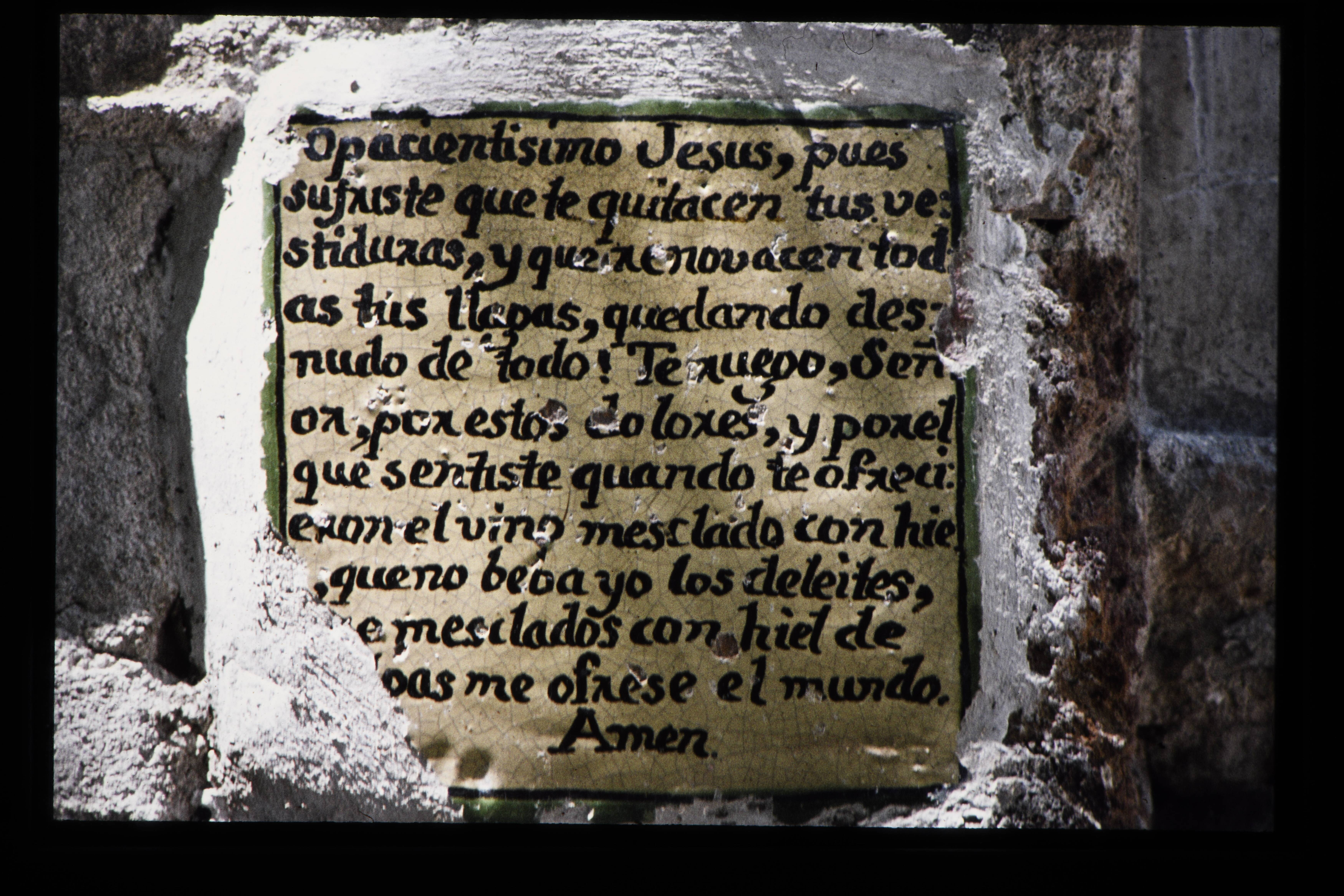 'Steen met opschrift. Bij Iglesia San Francisco Javi...
