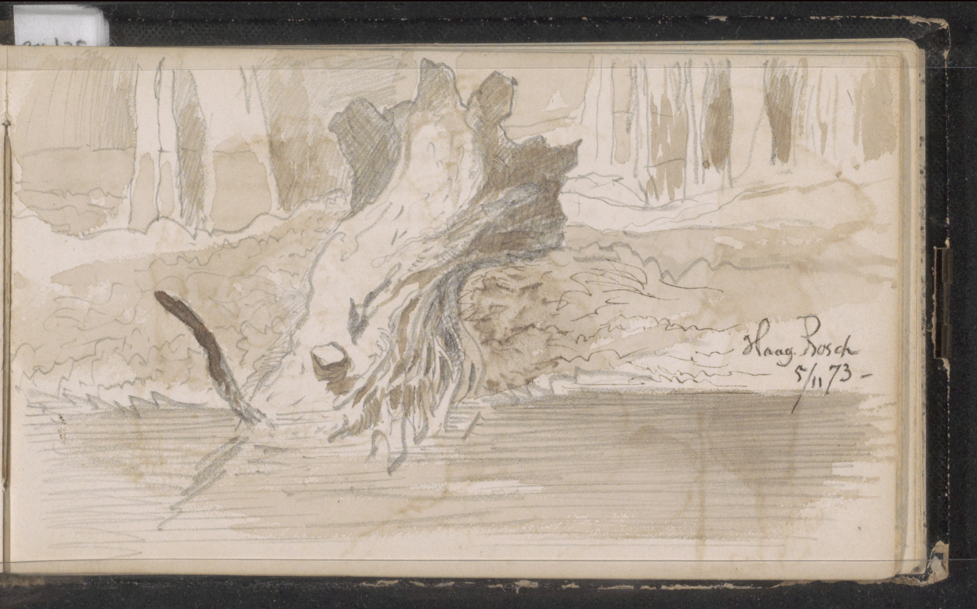 Liggende boomstam aan de waterkant in het Haagse Bos