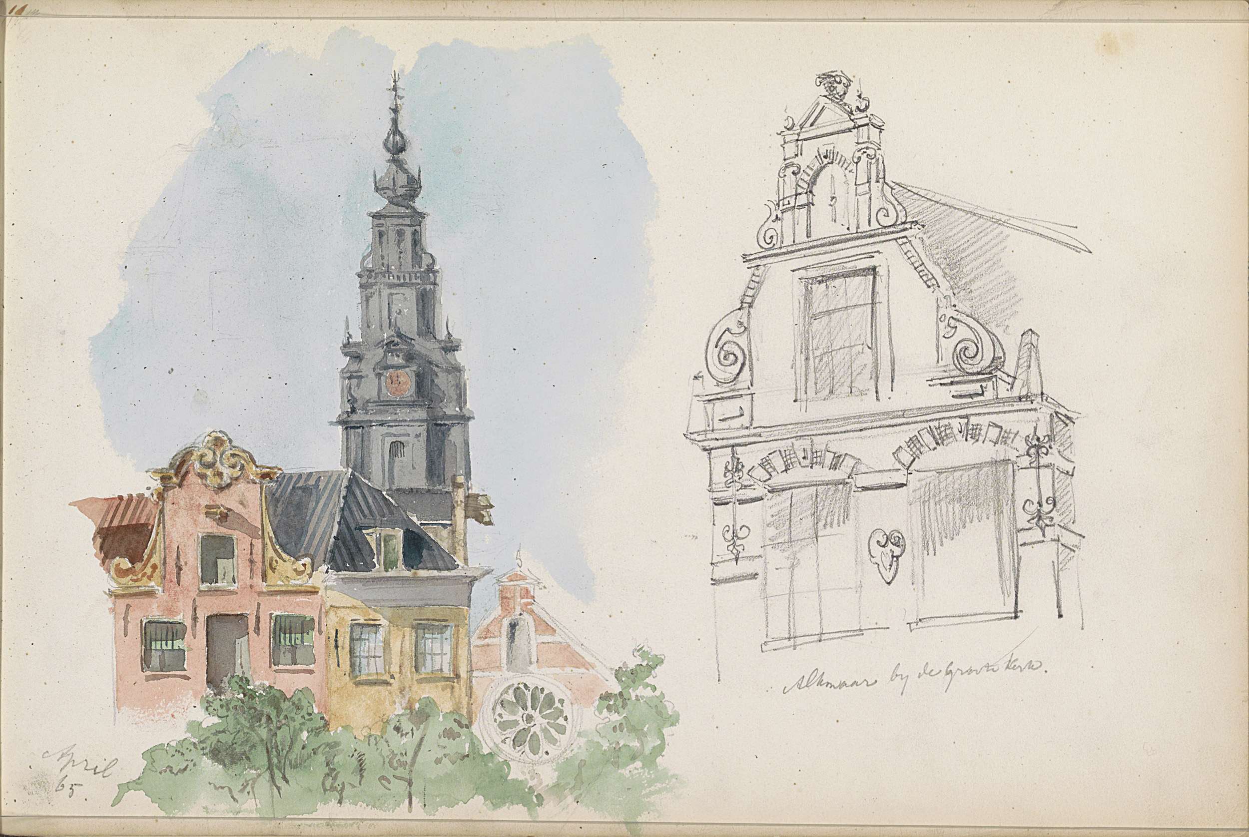Toren van de Zuiderkerk te Amsterdam en een gebouw b...