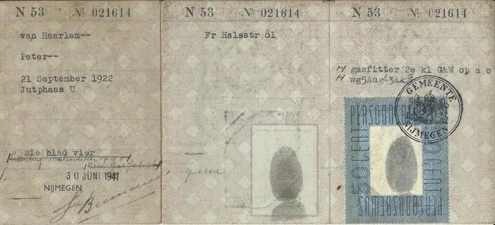 Persoonsbewijs op naam van Peter van Haarlem