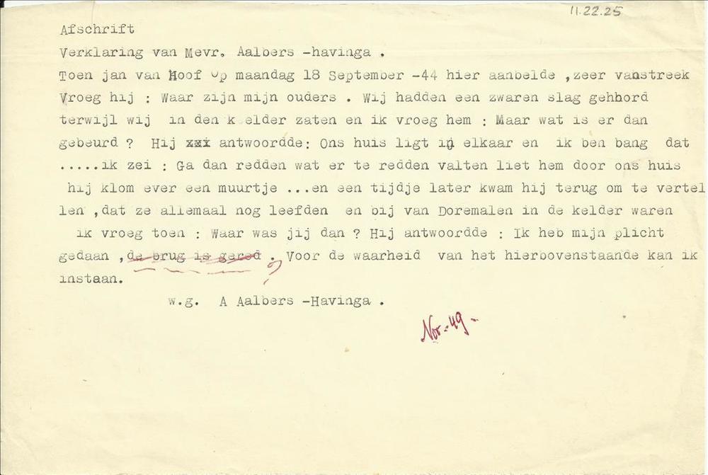 Afschrift verklaring A. Aalbers-Havinga, november 1949
