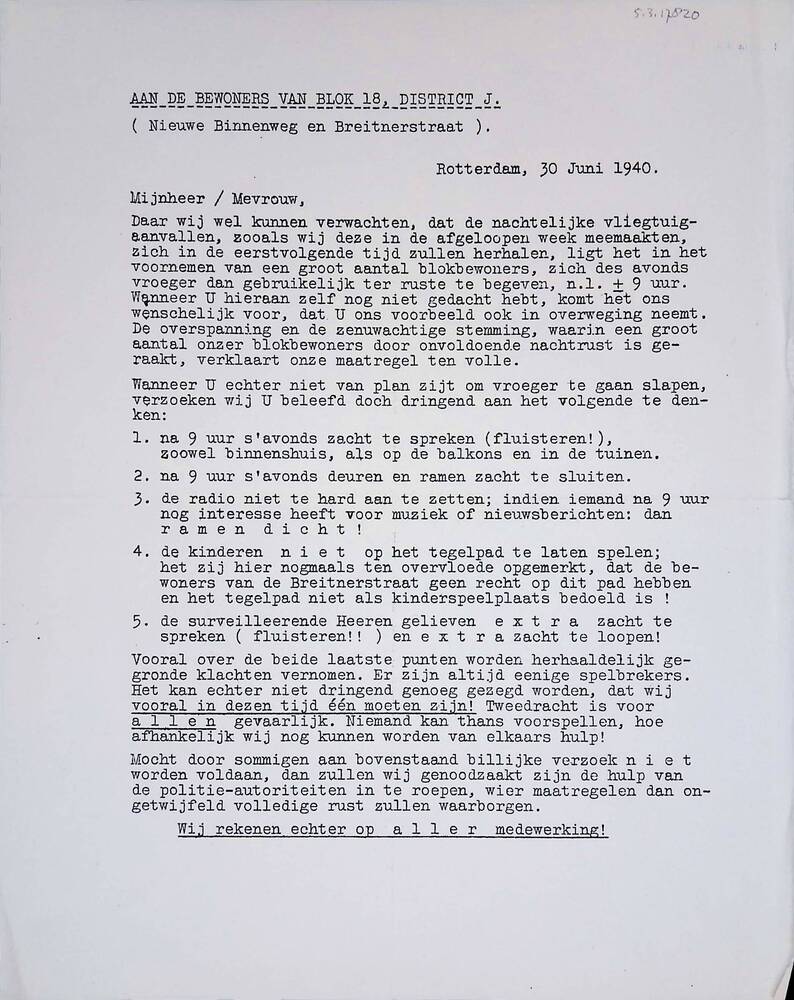 Brief aan de bewoners van blok 18 district J, d.d. 3...