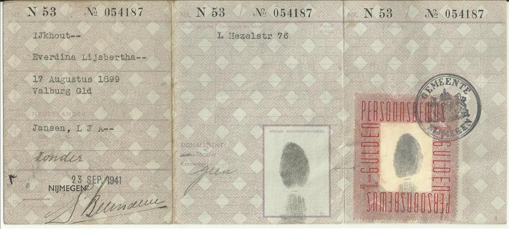 Persoonsbewijs op naam van IJkhout, Everdina Lijsbertha