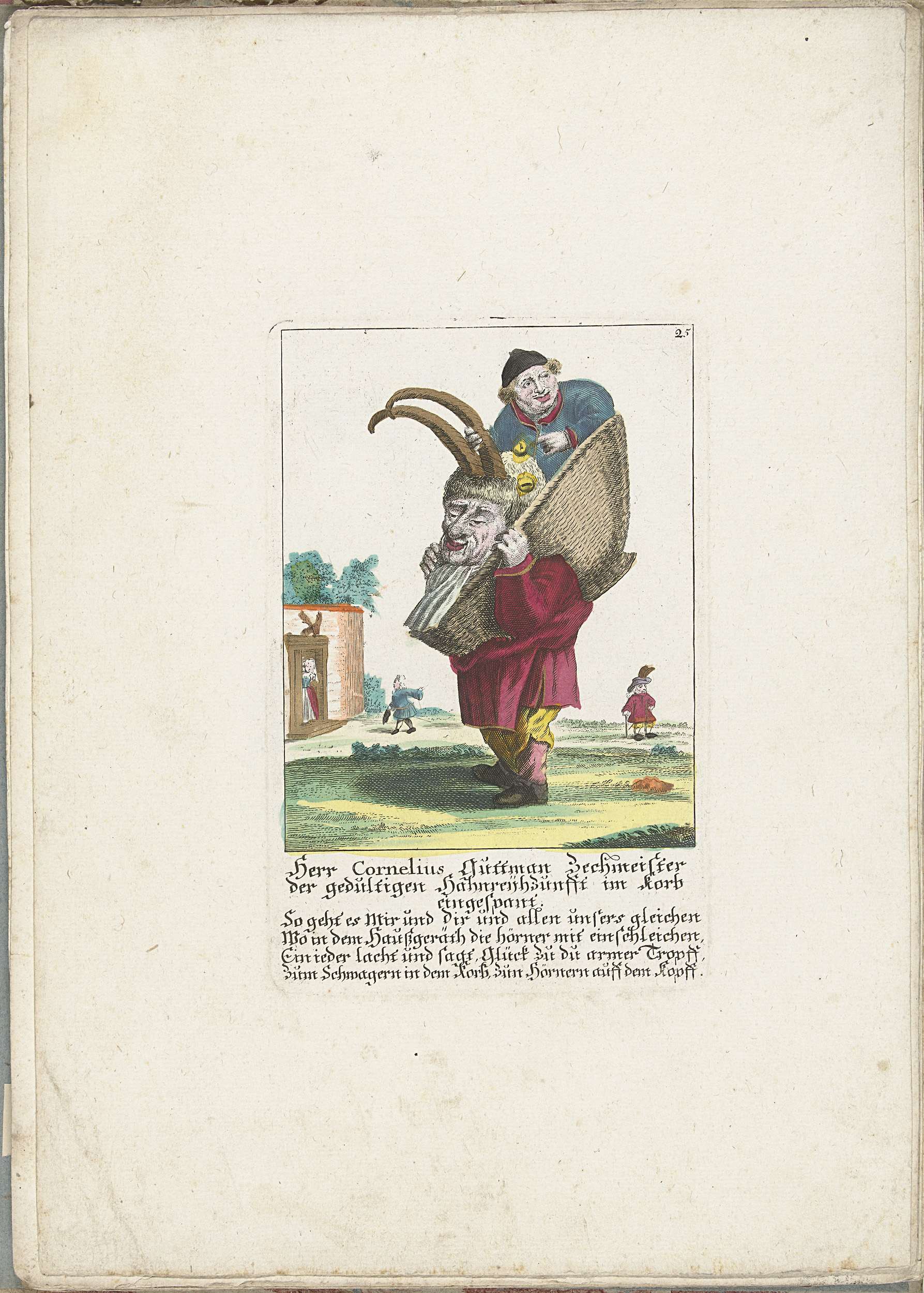 De kleine mens Cornelius Guttman als hoorndrager, ca...