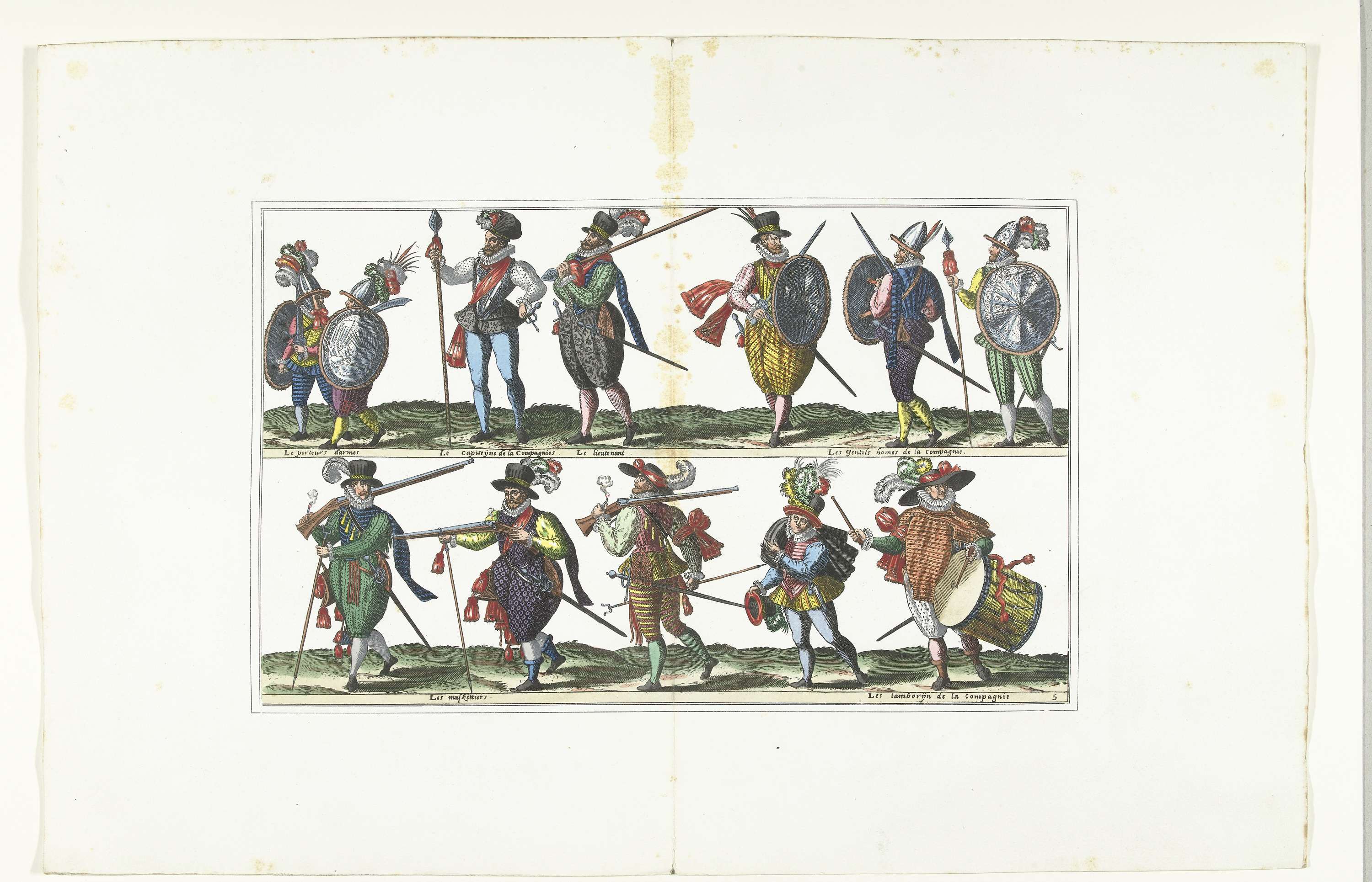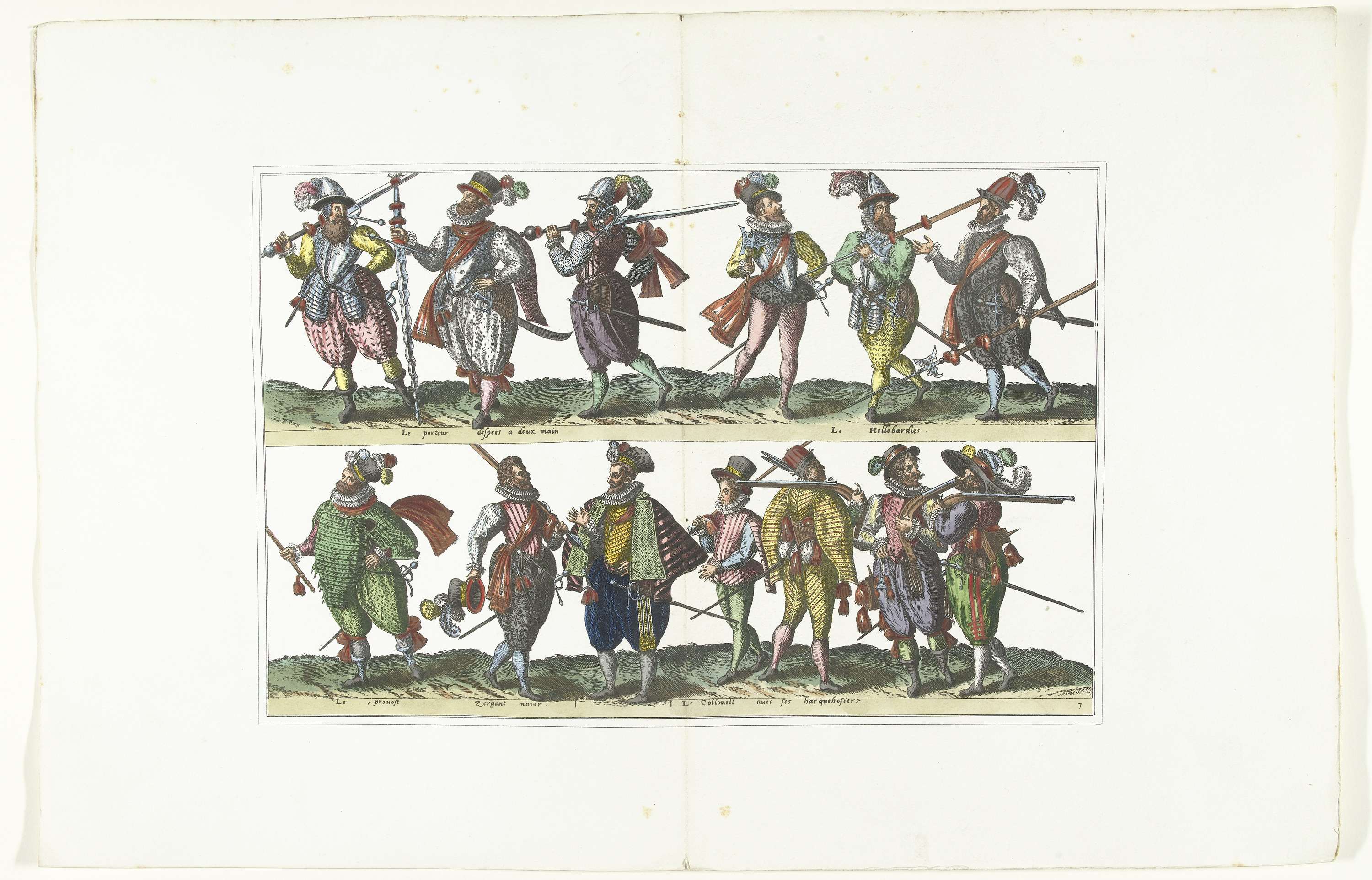 Dubbele plaat met twaalf gewapende burgers in unifor...