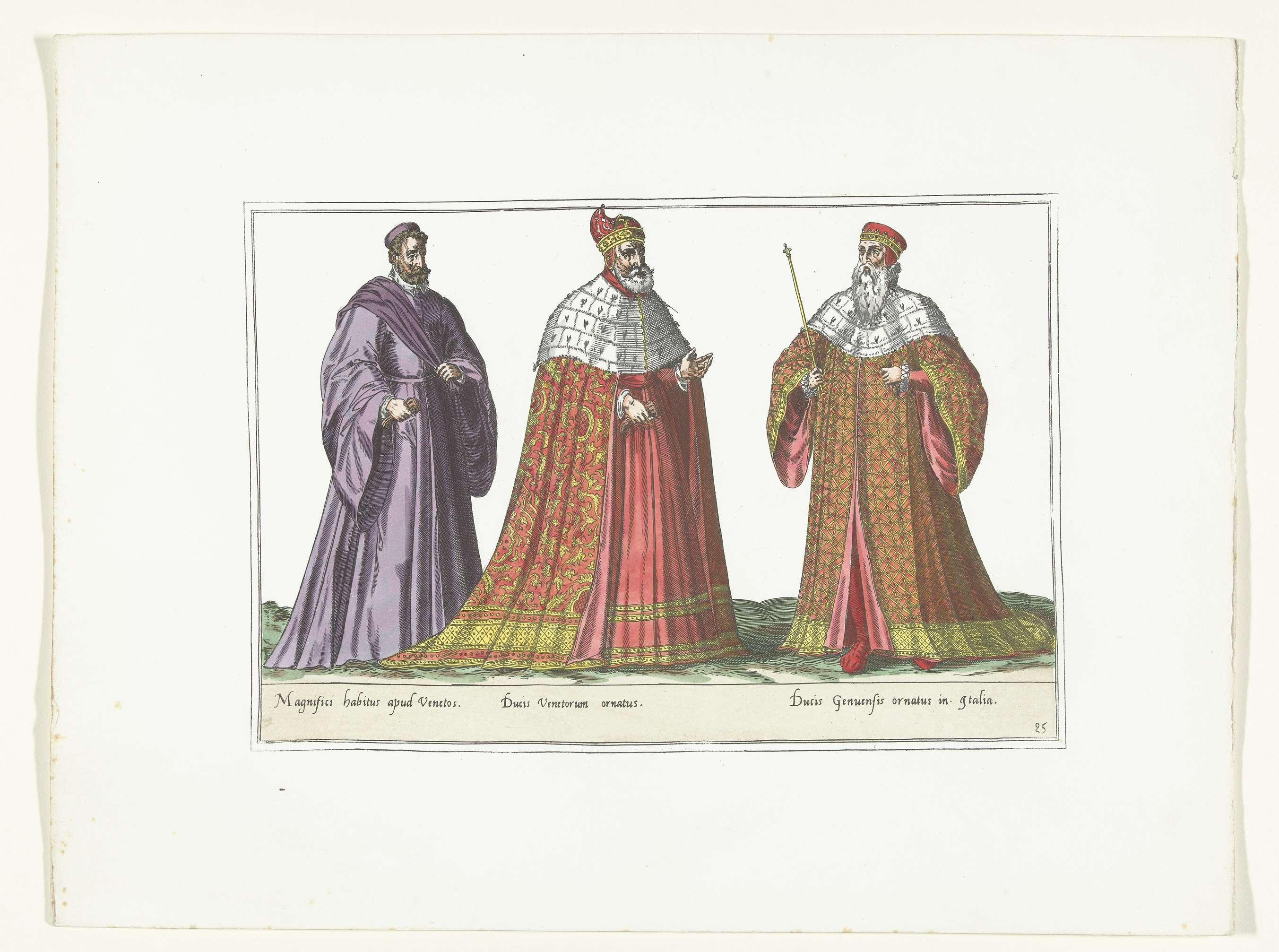 Drie mannen gekleed volgens de Italiaanse mode, ca. ...