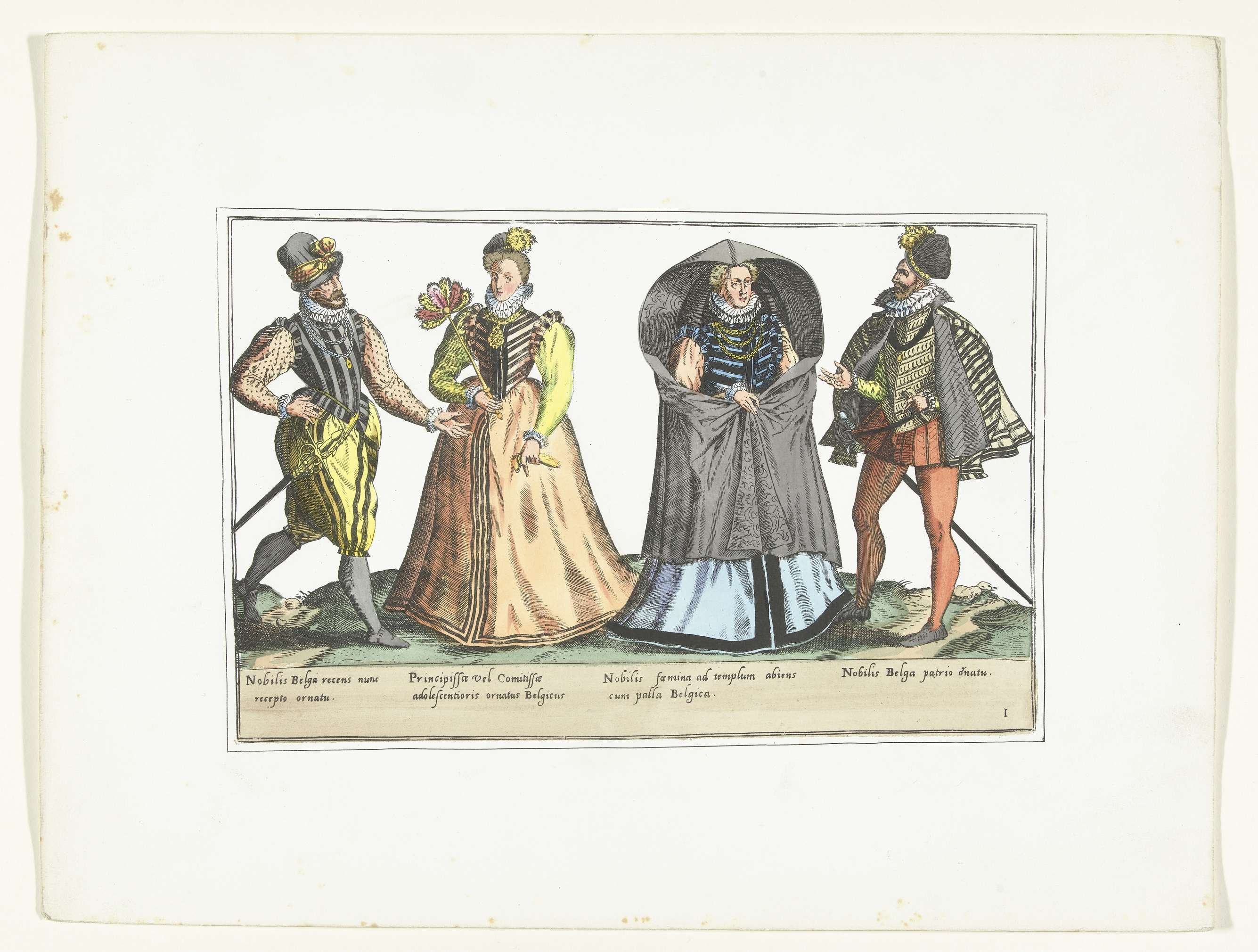 Vier vrouwen gekleed volgens de Duitse mode, ca. 1580