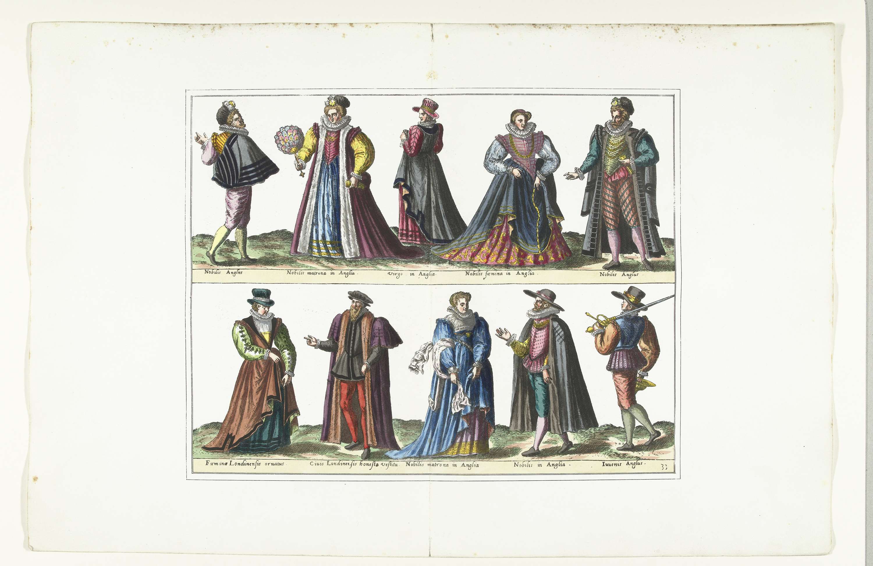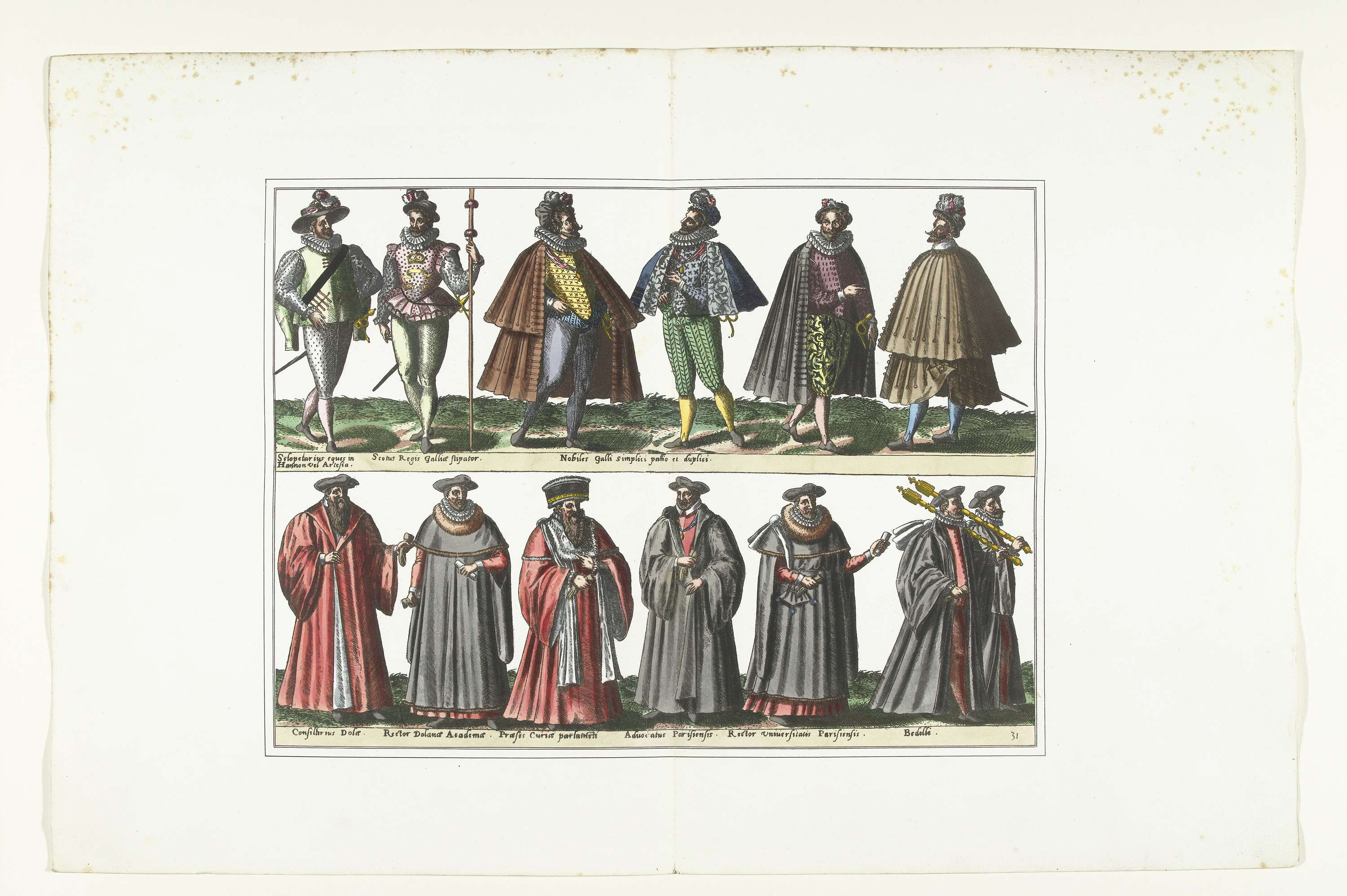 Dubbele plaat met twaalf mannen gekleed volgens de F...