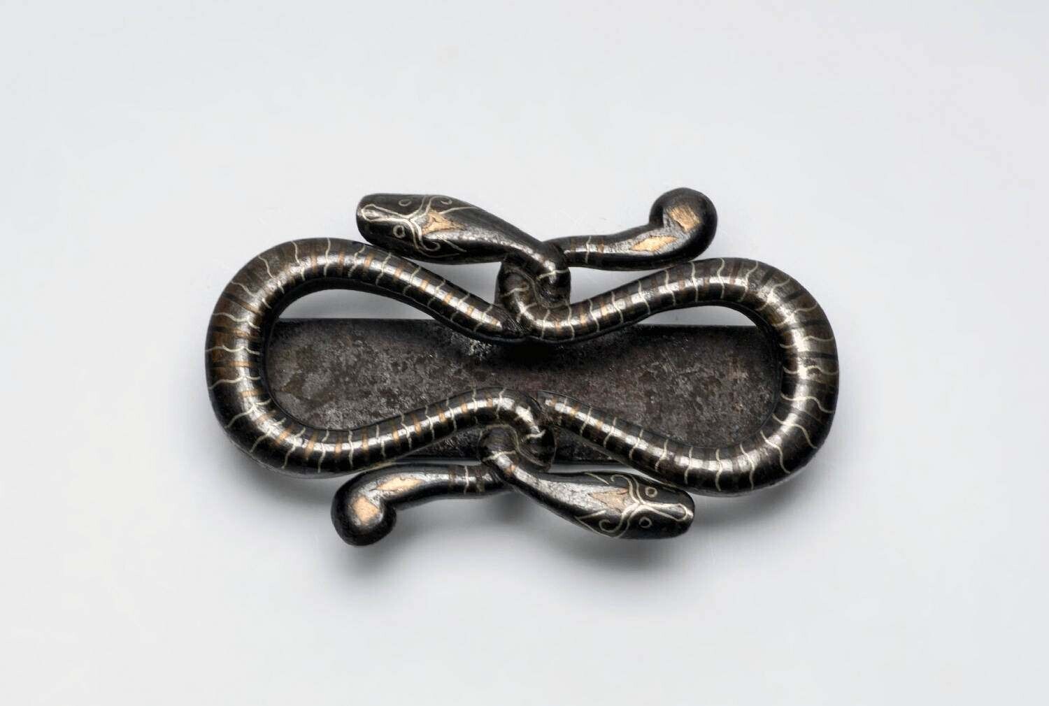 Brede ijzeren gesp van ineengestrengelde slangachtig...