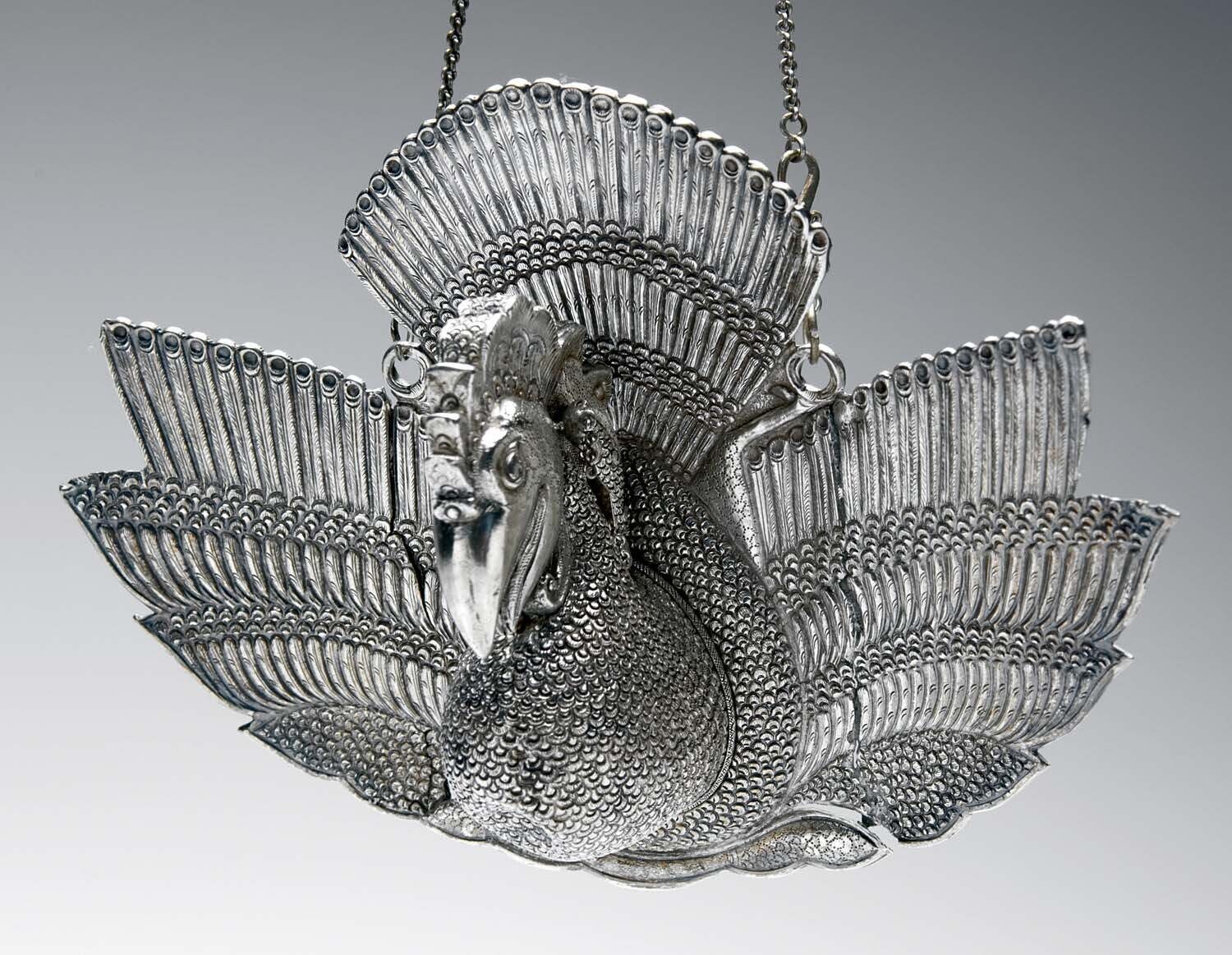 Ronde hanger van opengewerkt zilver, in het midden r...