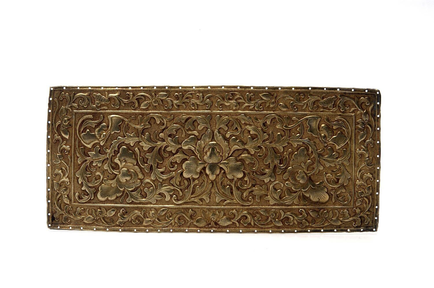 Ovale messingen tabaksdoos met vier grote palmetten ...