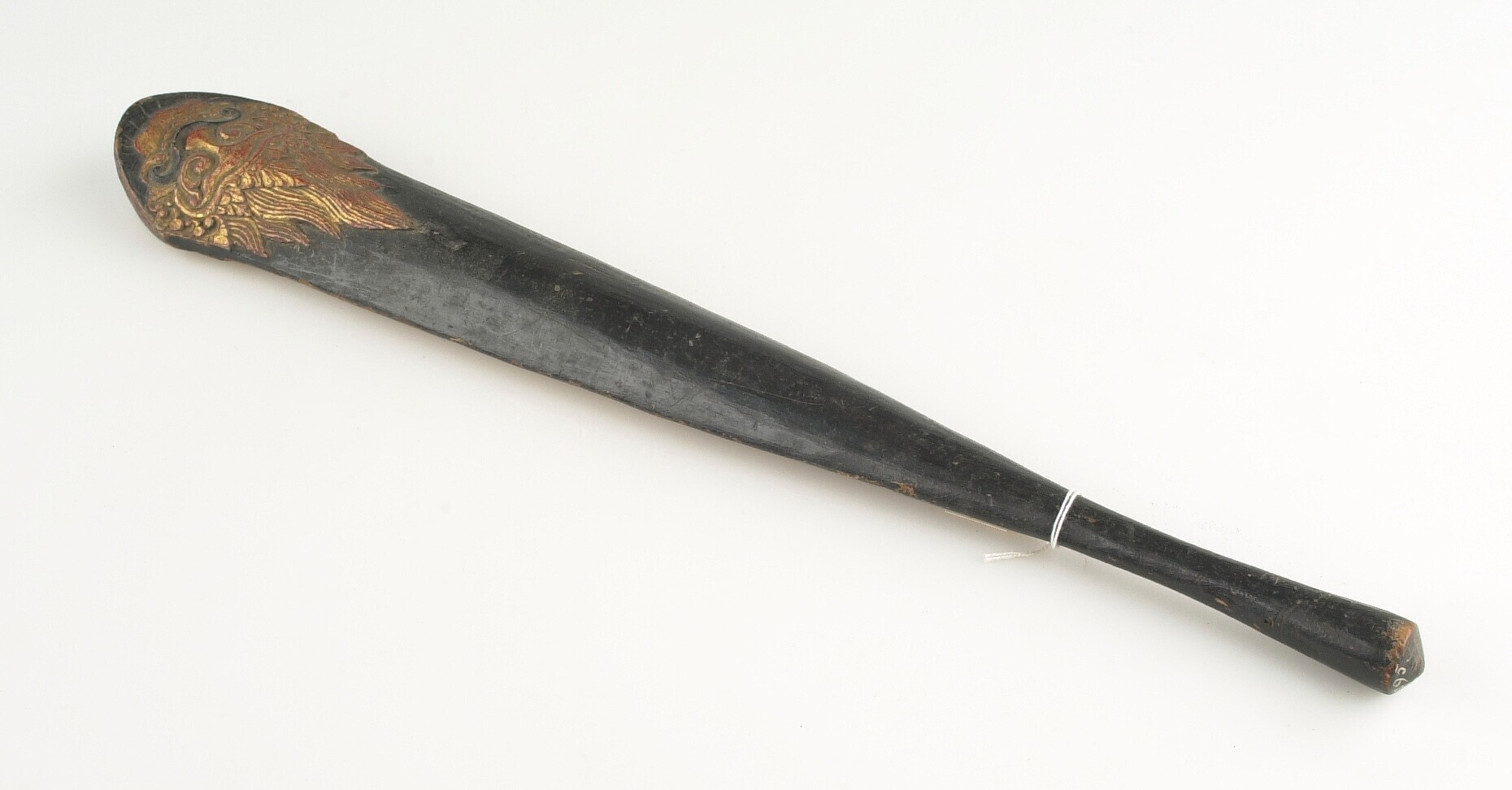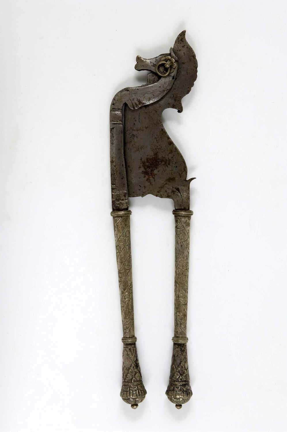 Houten krisgreep in de vorm van de hurkende mythisch...