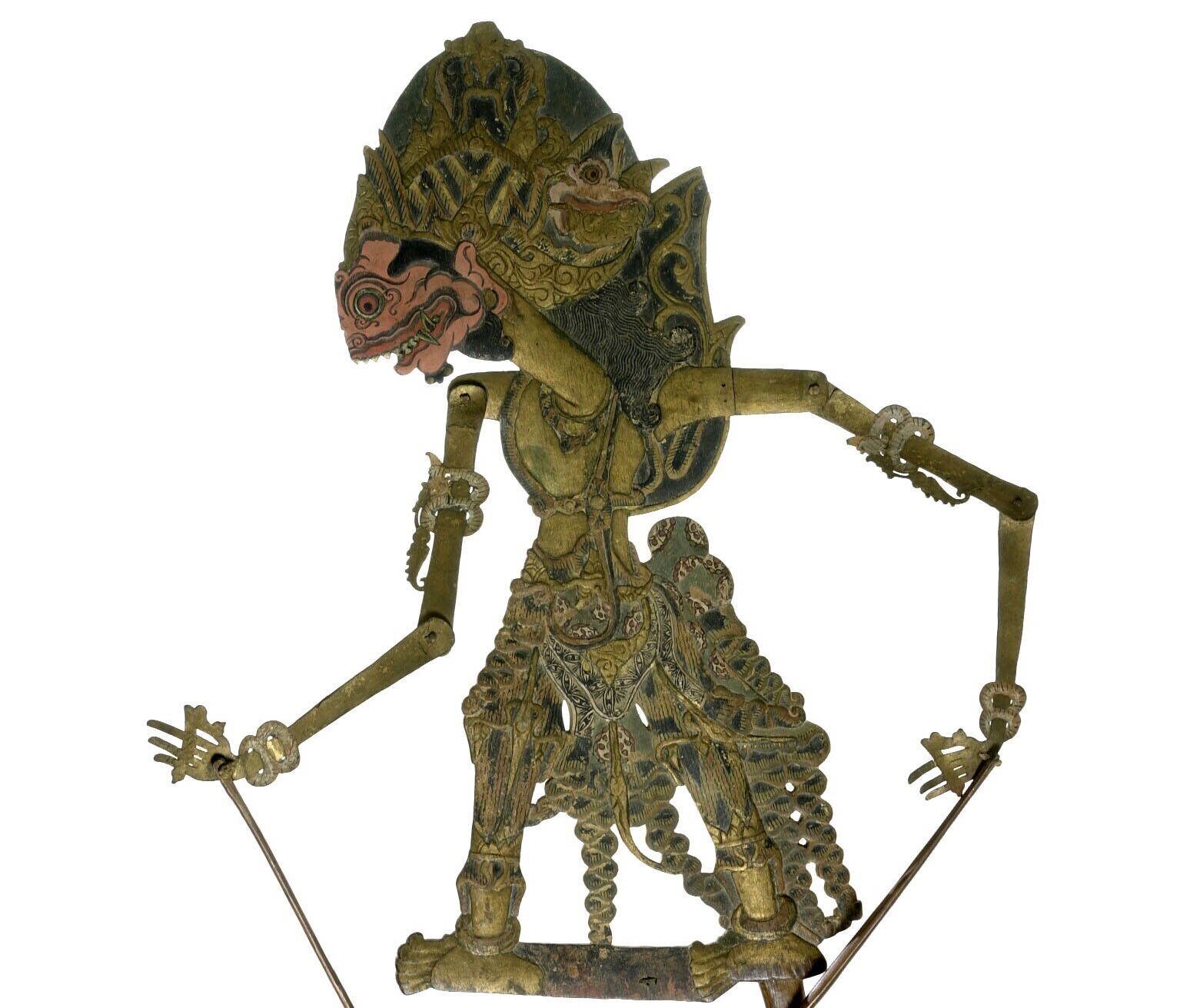 Wajangfiguur van hout en karbouwenhuid, vermoedelijk...